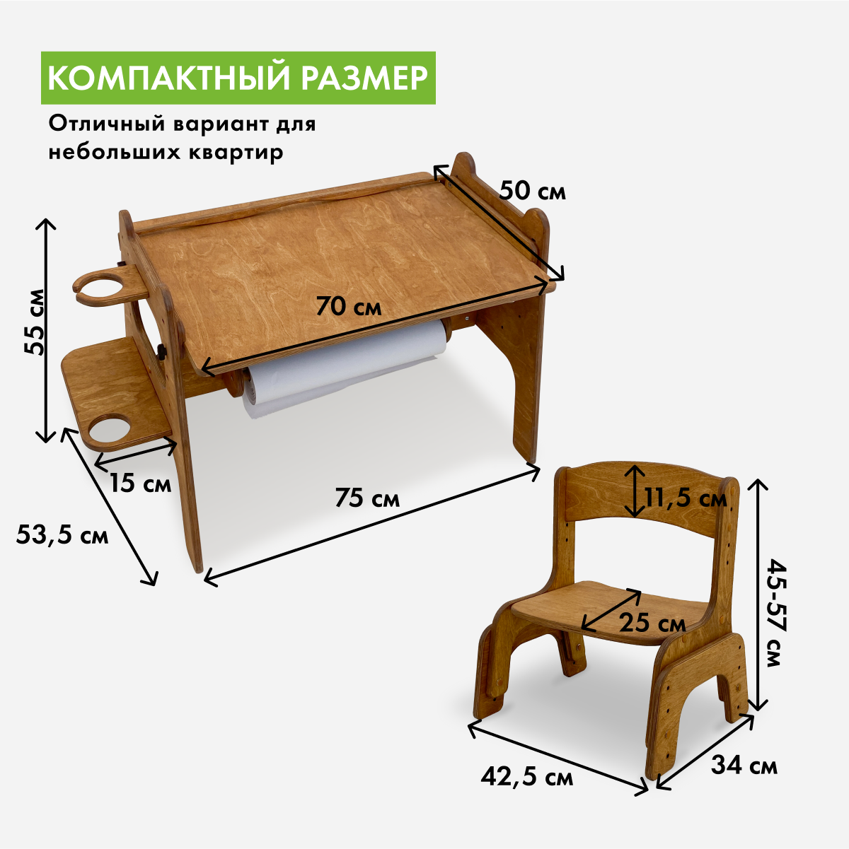 Стол детский Малышок и растущий стул, полная комплектация, прозрачное масло 10 175 ₽