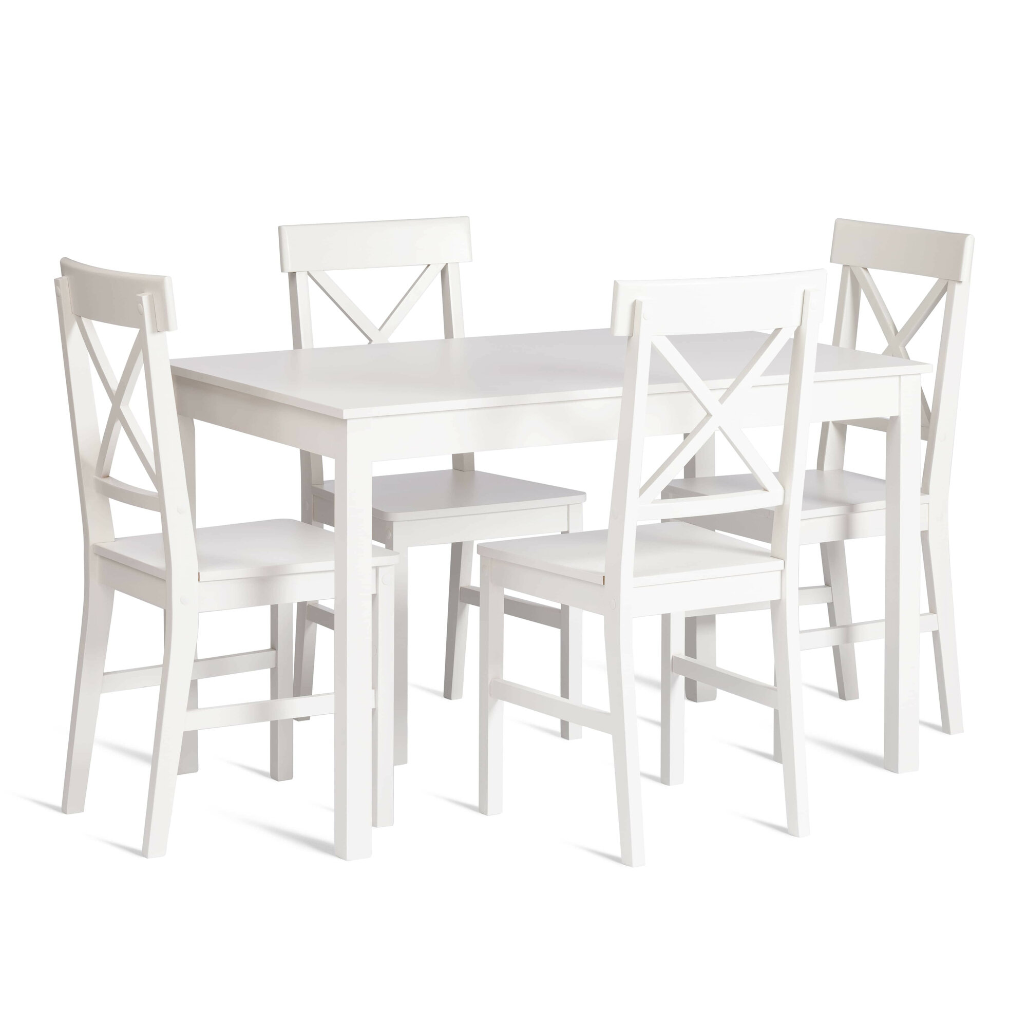 10 цен на Обеденный комплект TetChair Хадсон (стол + 4 стула) (mod.0102) МДФ/тополь/меламин, белый