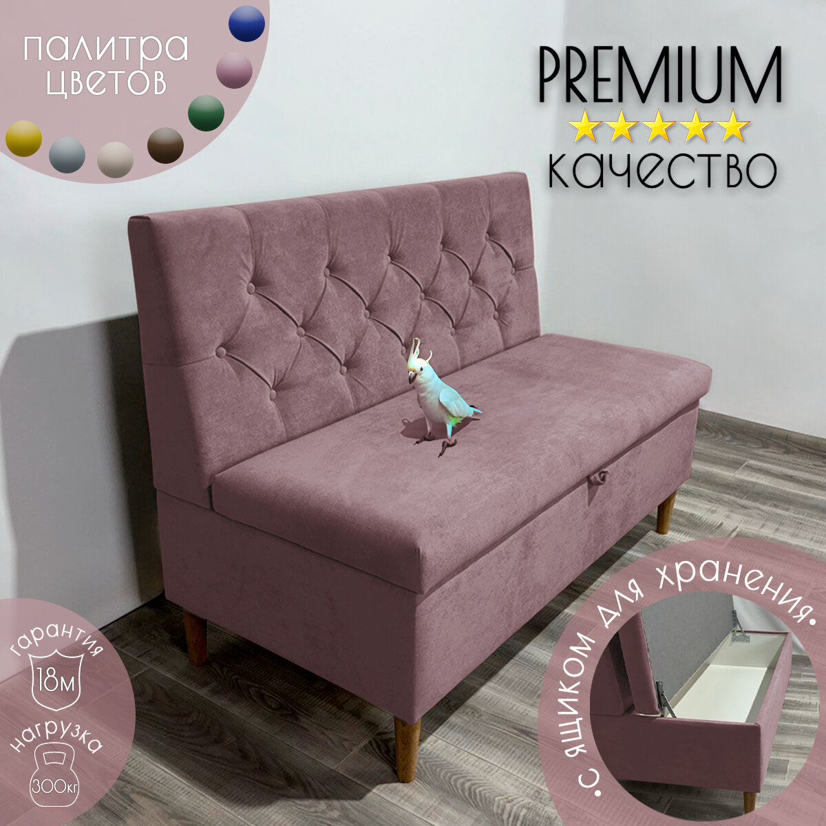10 цен на Диван на кухню "Рико" с ящиком для хранения/Велюр/Розовый 100x59x85