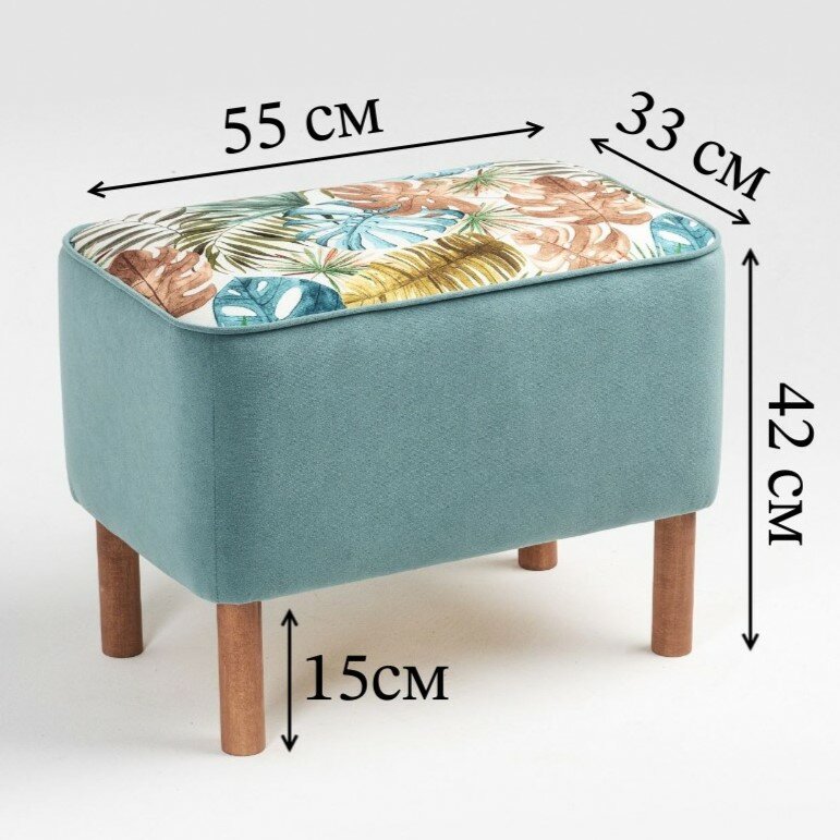 Пуфик 55x33x42 Tropic прямоугольный на деревянных ножках Банкетка Пуфик для ног Мягкий пуф информация: