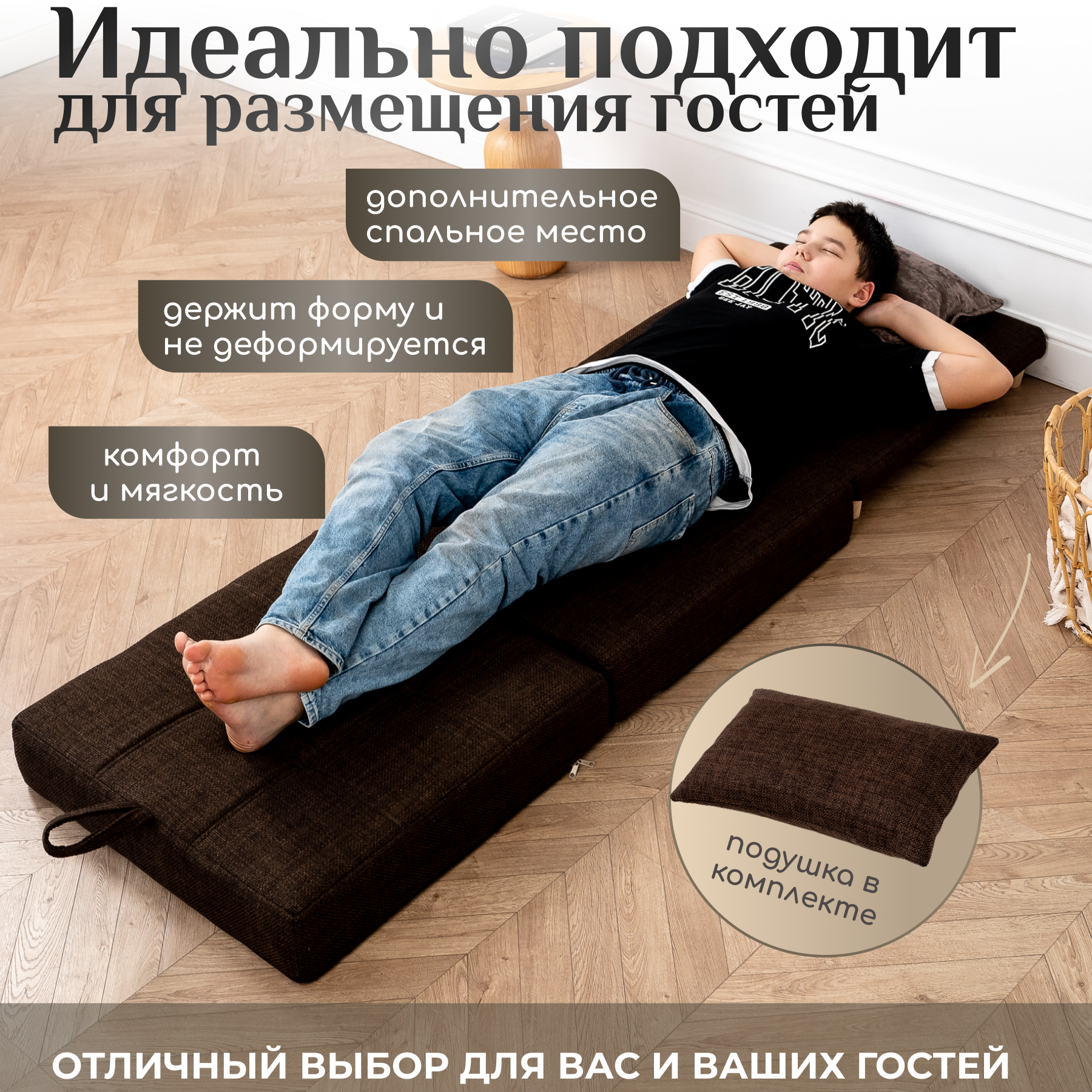 10 цен на Пуф трансформер кровать раскладушка темно-коричневая рогожка с подушкой