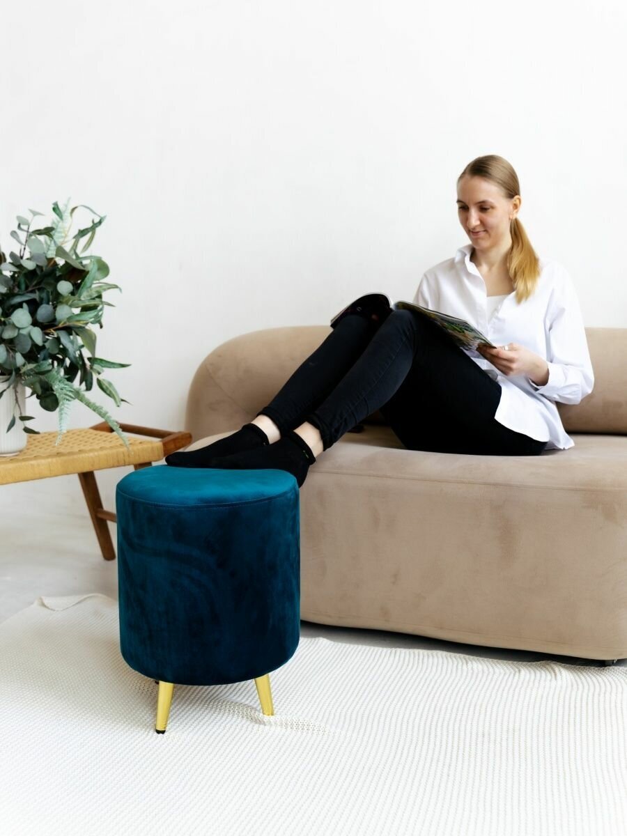 Пуф круглый Элика / пуфик в прихожую, в спальню / велюр / темно-синий