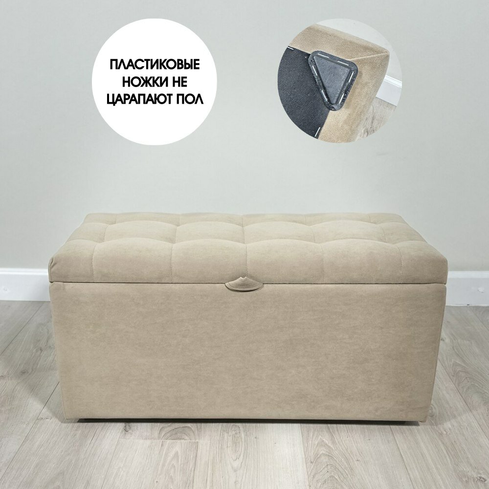 Пуфик в прихожую спальню с ящиком для хранения, 78х40х38, темно-бежевый информация: