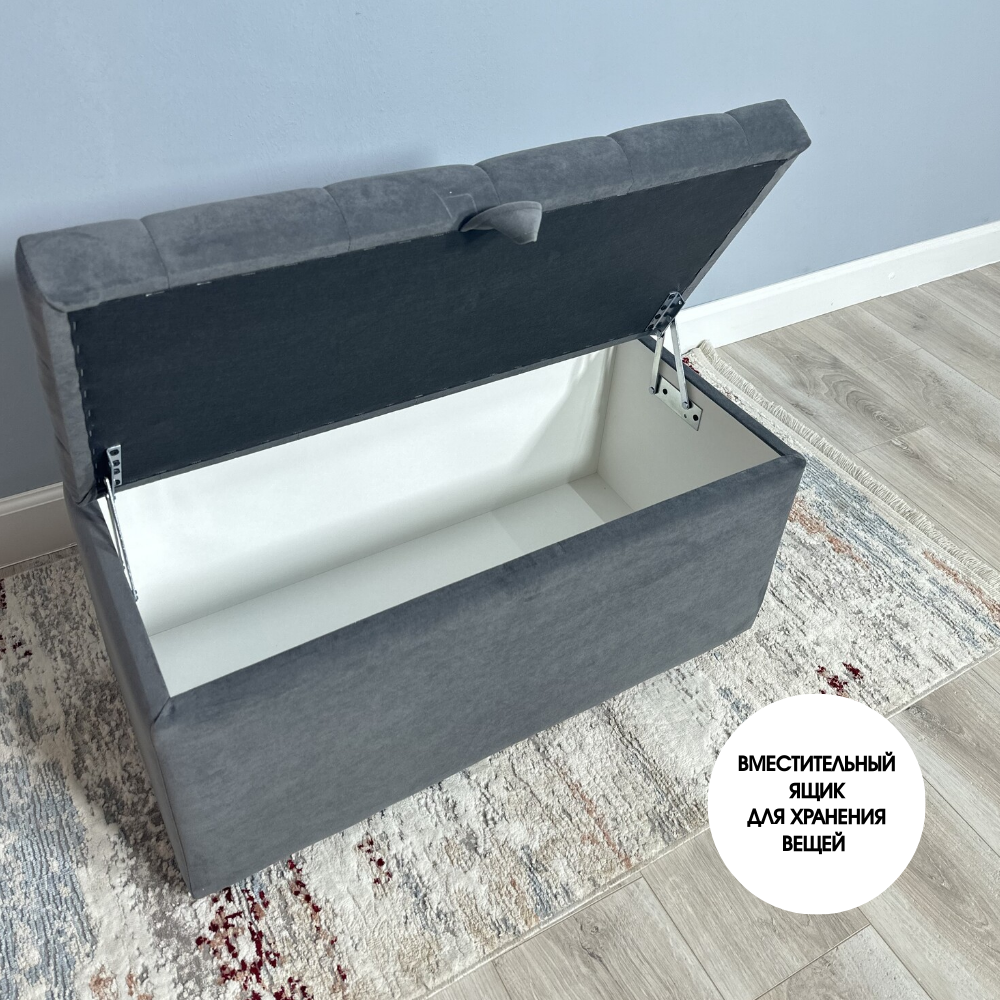 Пуфик в прихожую спальню с ящиком для хранения, 78х40х38, серый информация: