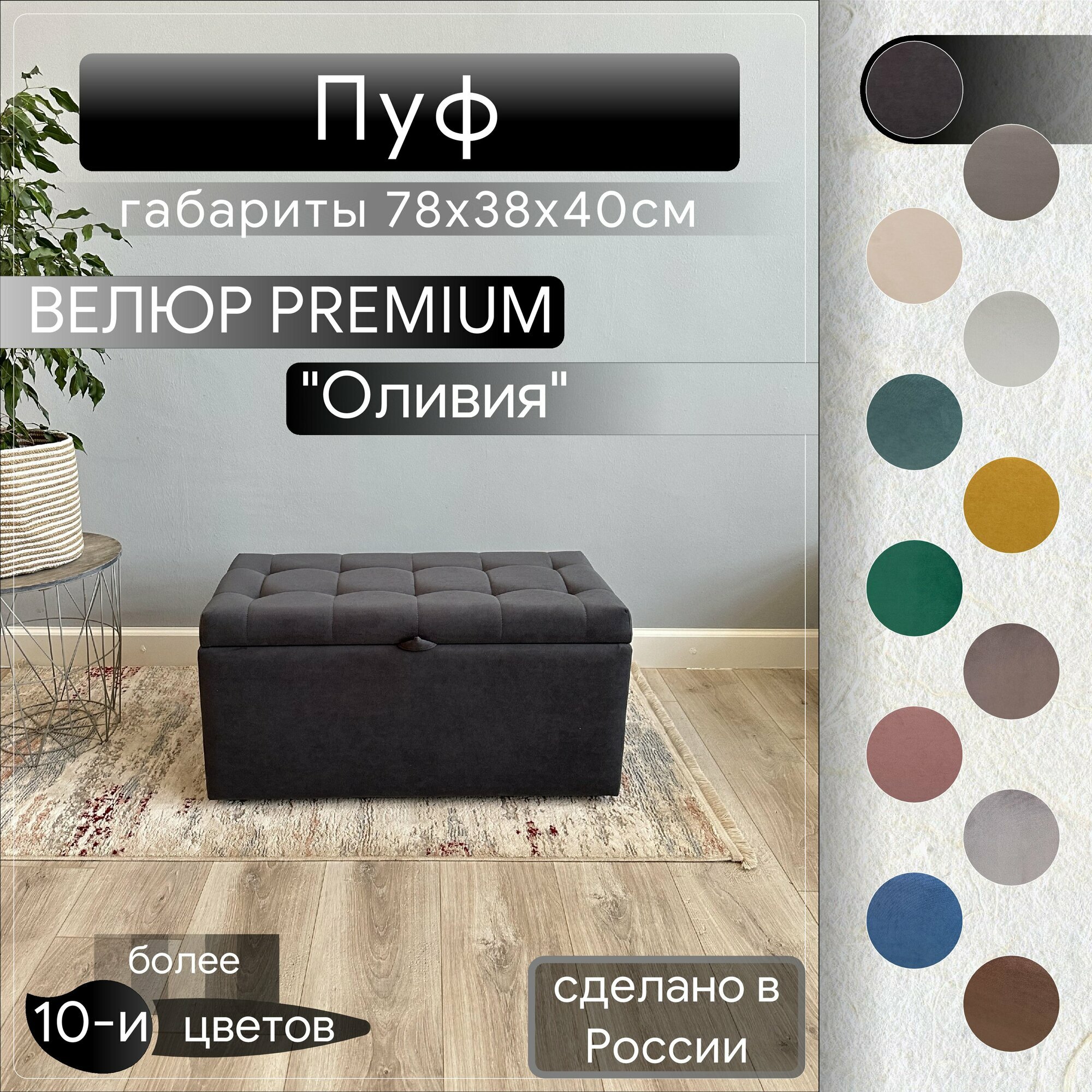 Отзывы на Пуфик в прихожую спальню с ящиком для хранения, 78х40х38, графит