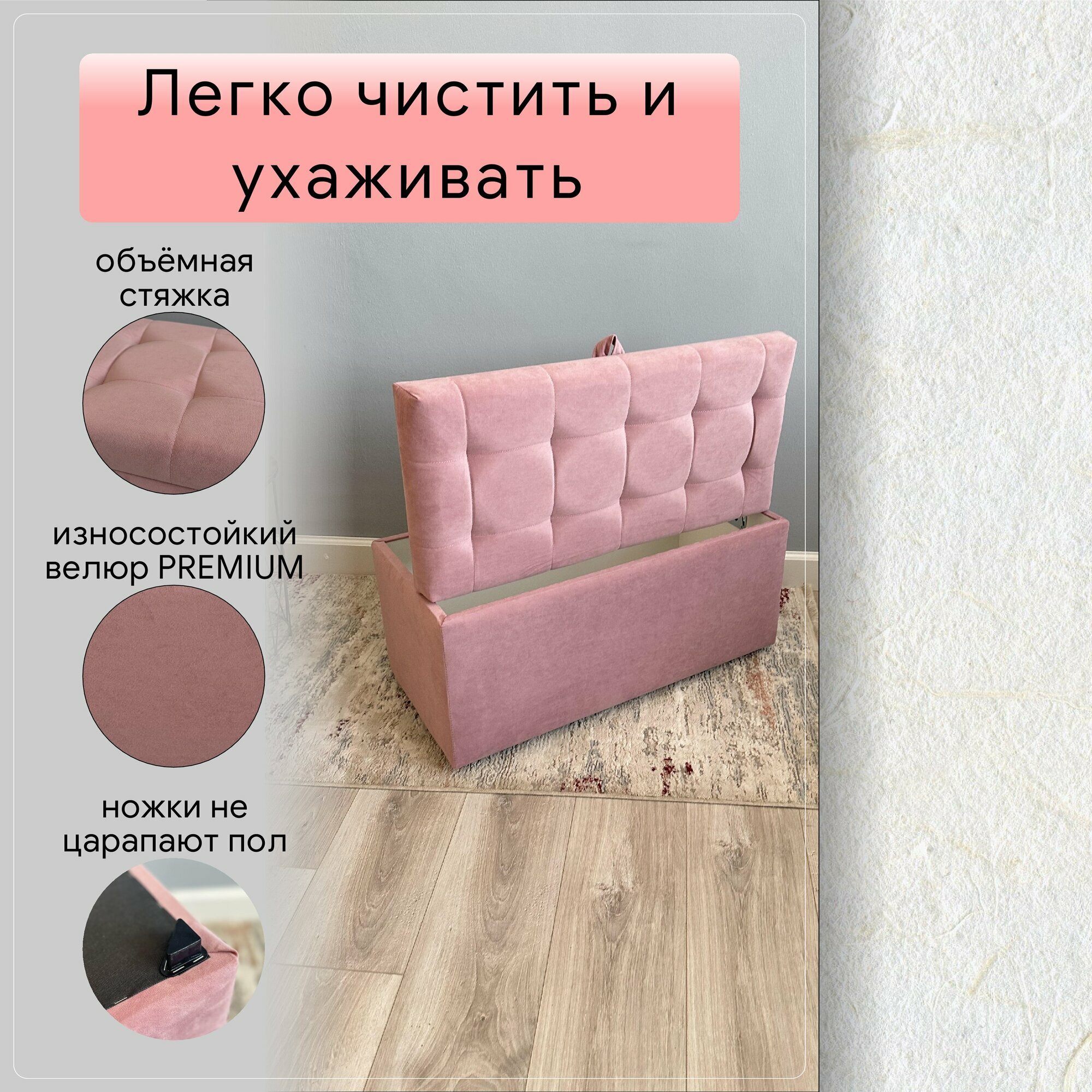Пуфик в прихожую спальню с ящиком для хранения, 78х40х38, розовый информация: