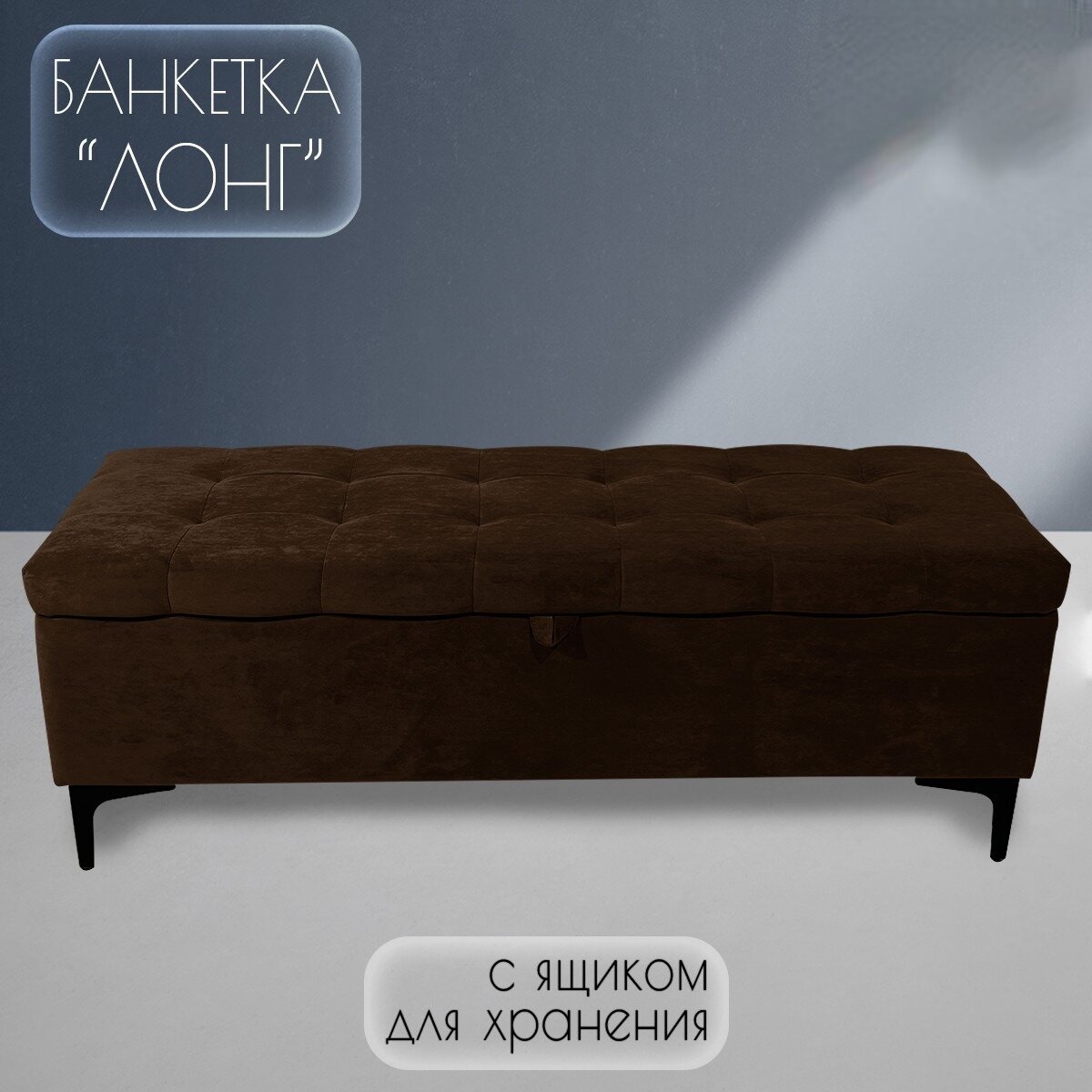 10 цен на Пуфик банкетка "Лонг" с ящиком для хранения/ Велюр/Коричневый/ 120x40x43 (см)