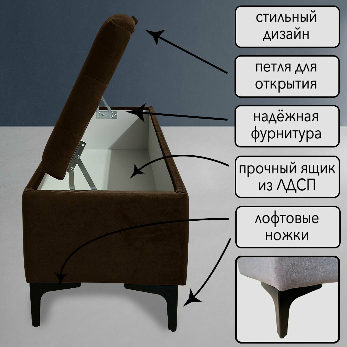 Пуфик банкетка "Лонг" с ящиком для хранения/ Велюр/Коричневый/ 120x40x43 (см) информация: