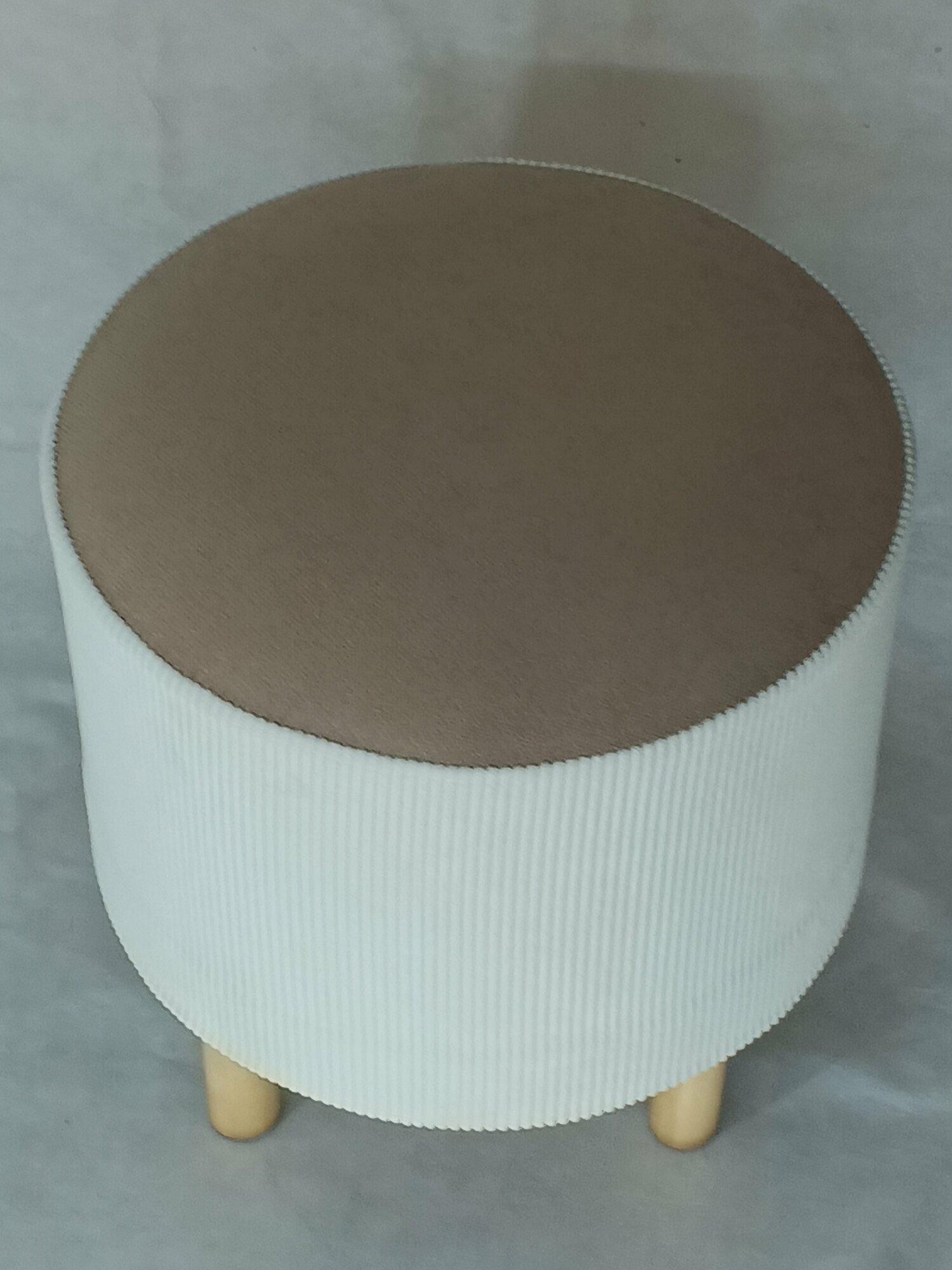 Отзывы на Пуфик, пуф Круглый, в прихожую, верх- велюр антивандальный бежевый, низ- вельвет белый (сливочный) на деревянных ножках с подпятниками