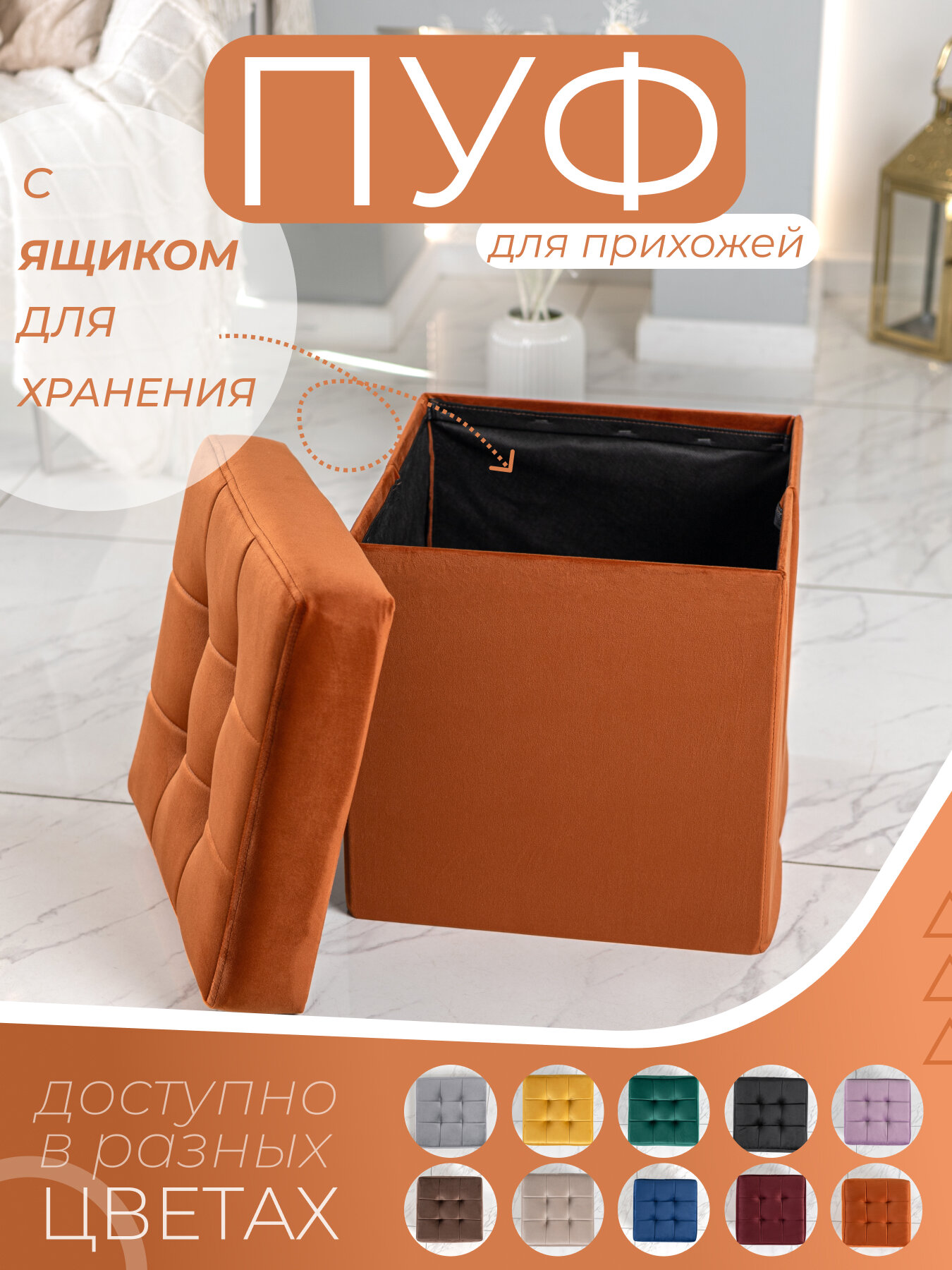 10 цен на Пуф оранжевый складной с крышкой и ящиком для хранения
