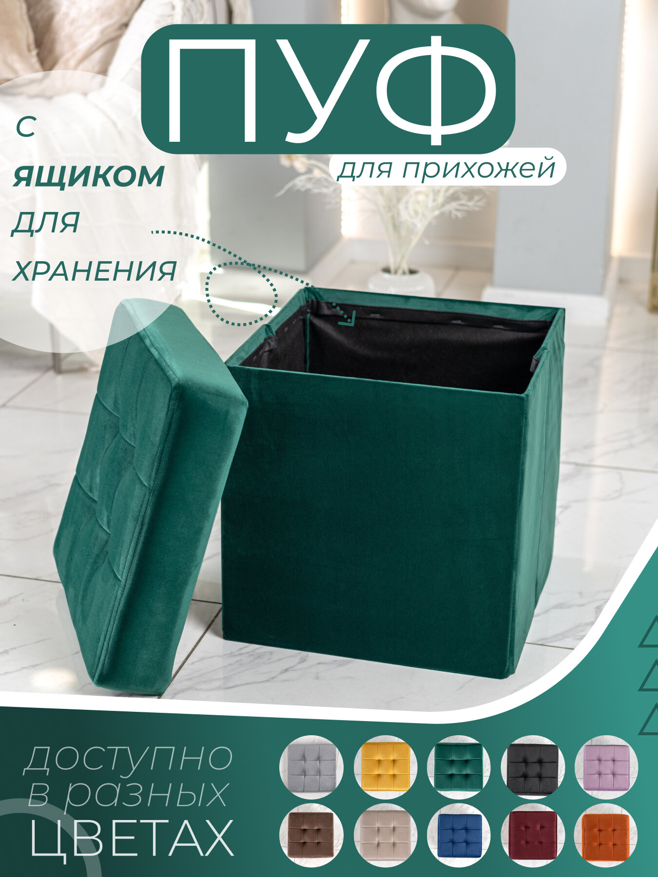 10 цен на Пуф изумрудный складной с крышкой и ящиком для хранения