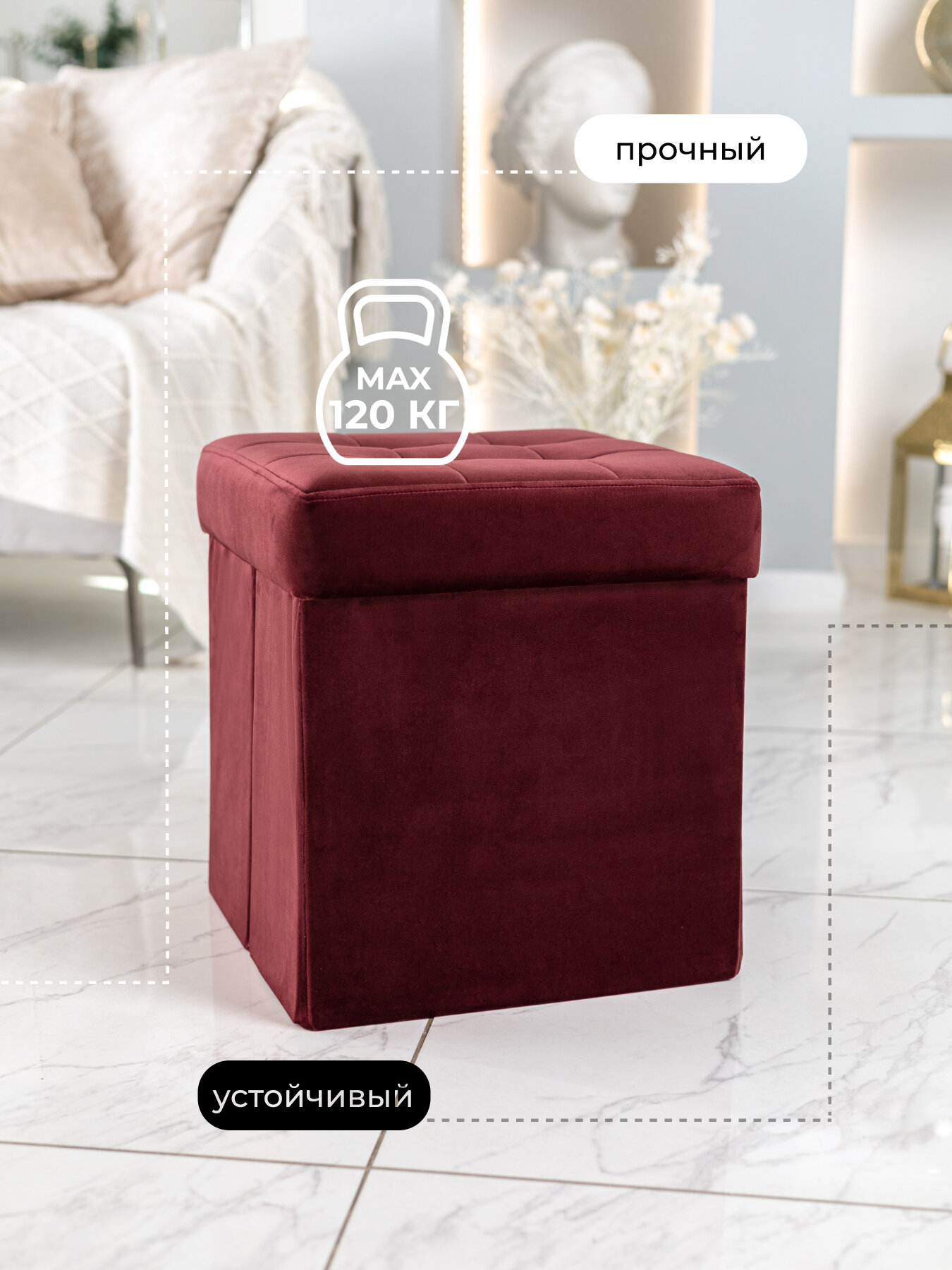 10 цен на Пуф бордовый складной с крышкой и ящиком для хранения