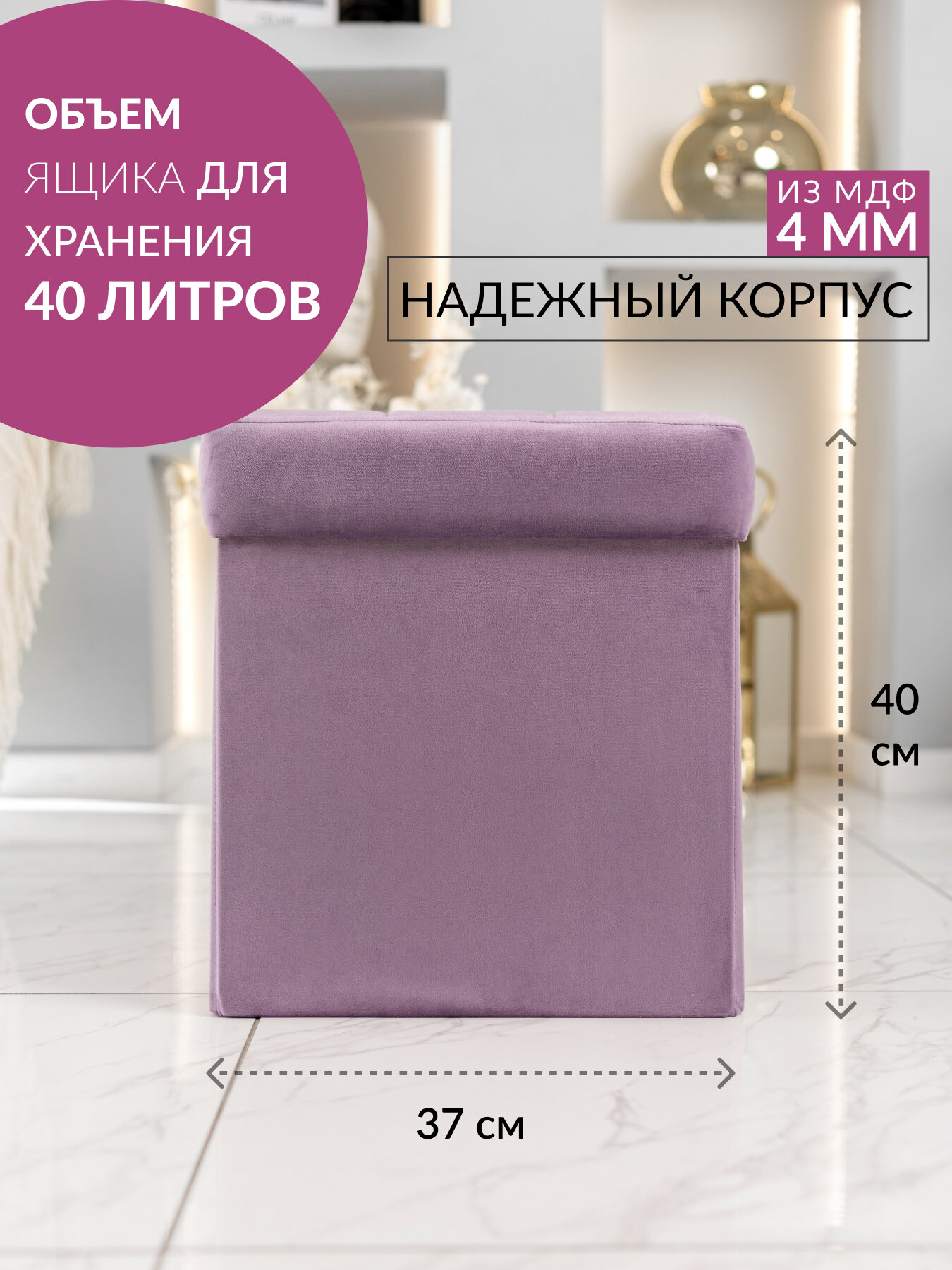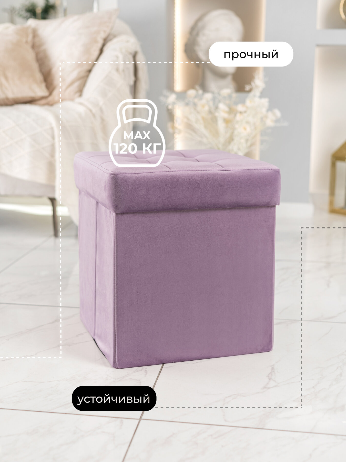 Пуф фиолетовый складной с крышкой и ящиком для хранения информация: