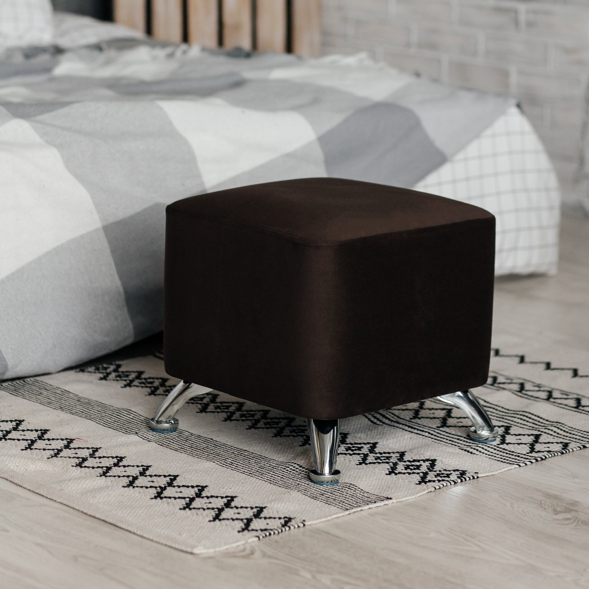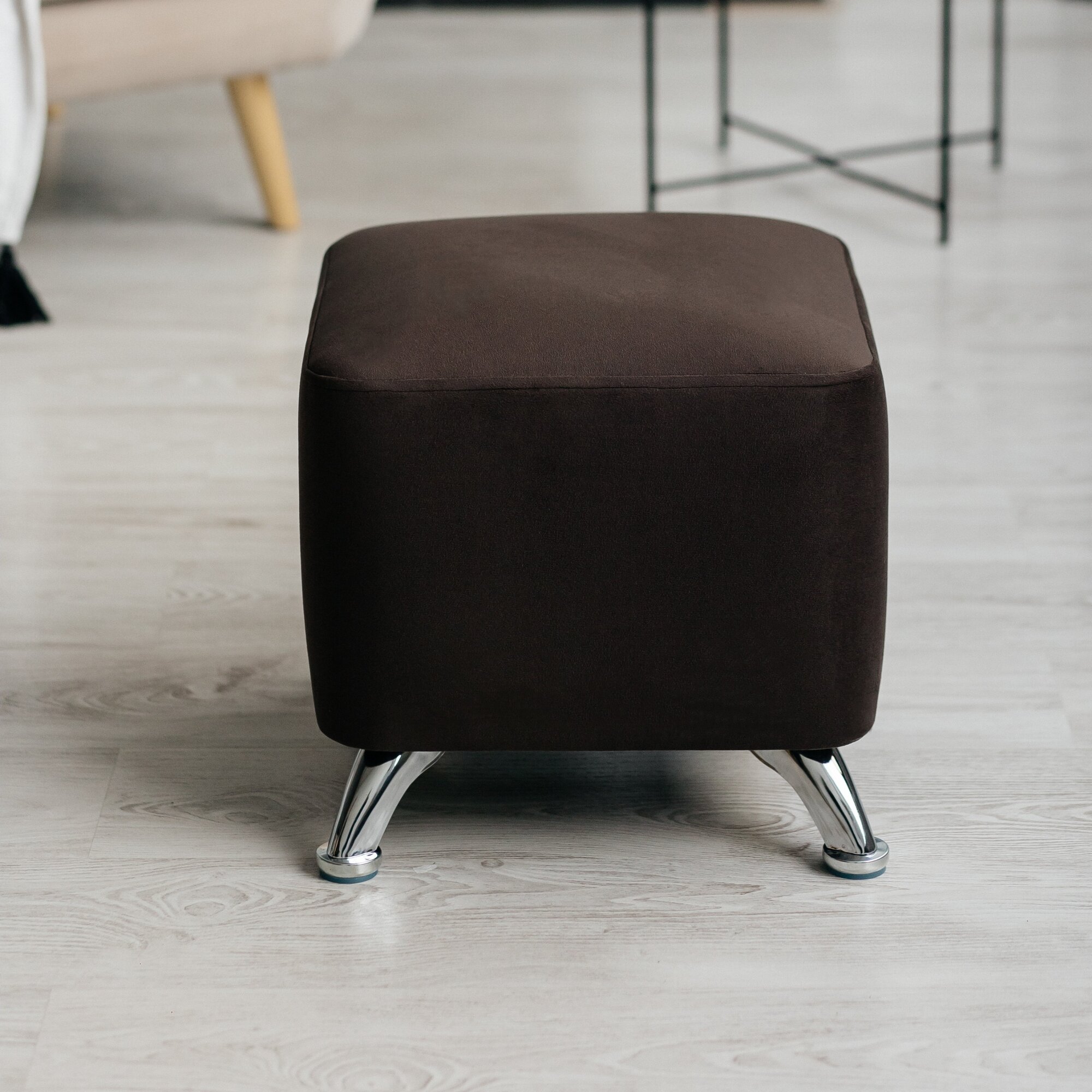 Отзывы на Пуф Парадис-Хром, коричневый, квадратный, на Хромированных ножках из фанеры и массива.