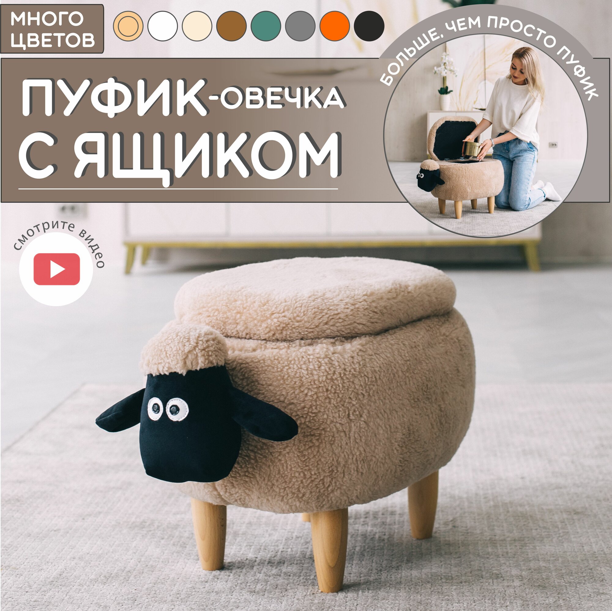 10 цен на Детский пуфик-животное Овечка с ящиком для хранения