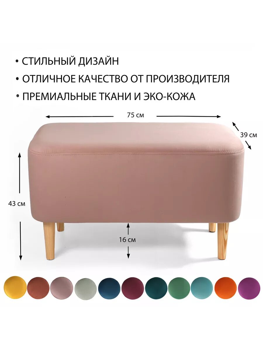 Пуфик Банкета из велюра на деревянных ножках для спальни, гостиной, прихожей 9 000 ₽