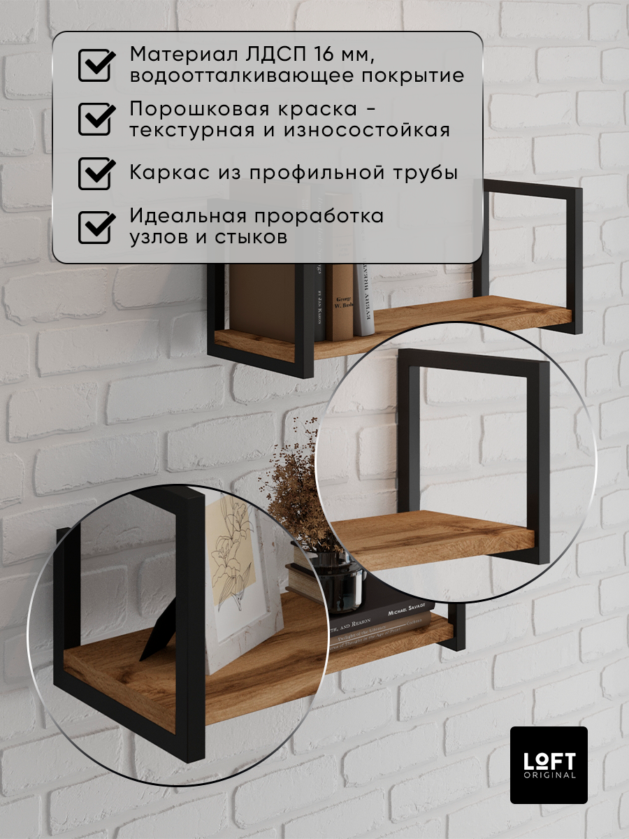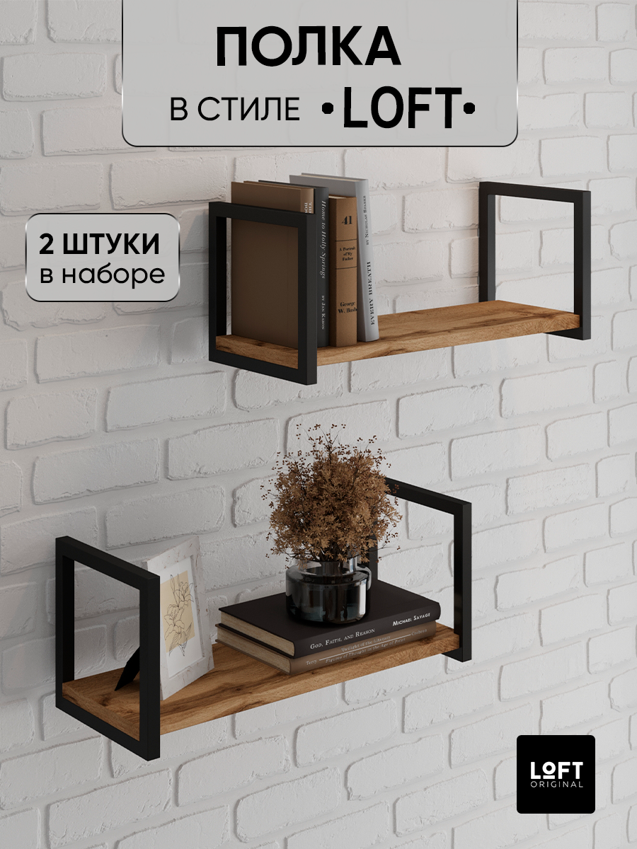 Отзывы на Полка настенная деревянная навесная лофт / Комплект полок из 2 штук коричневых