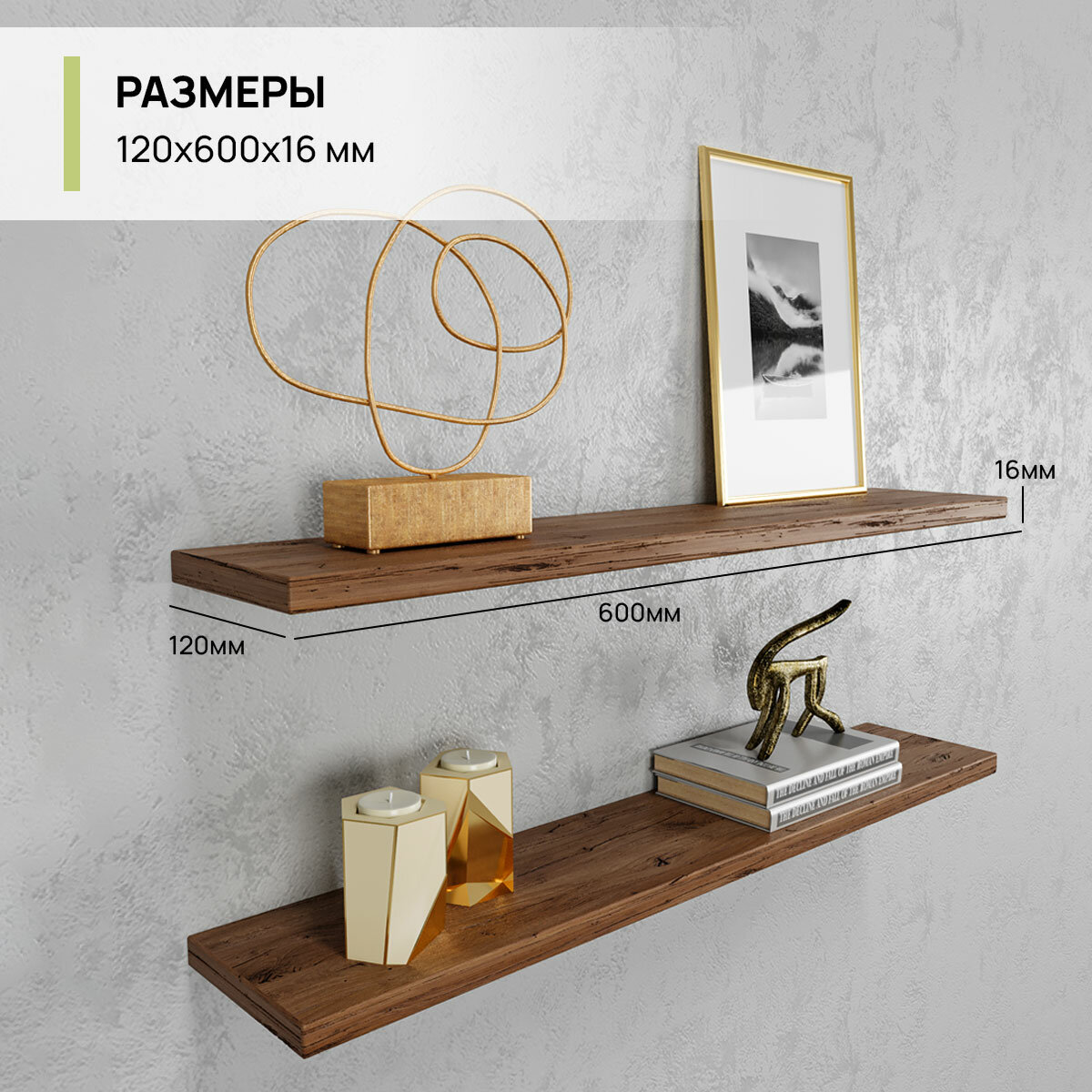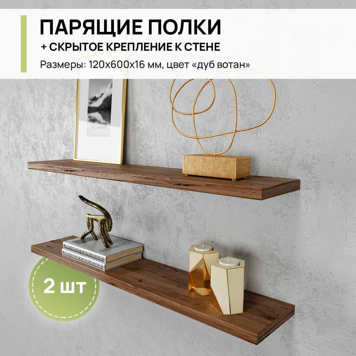 Полка навесная настенная комплект 2шт, 60х12х1.6см информация: