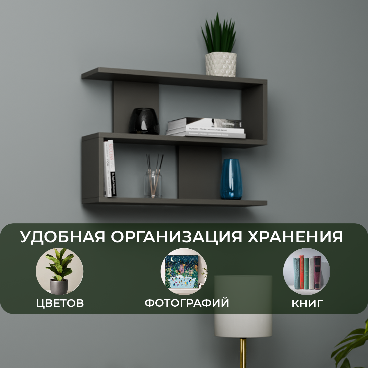 Отзывы на Полка настенная Графит RIO / полка настенная / книжная / деревянная / для книг, цветов, игрушек 60х42х16 см
