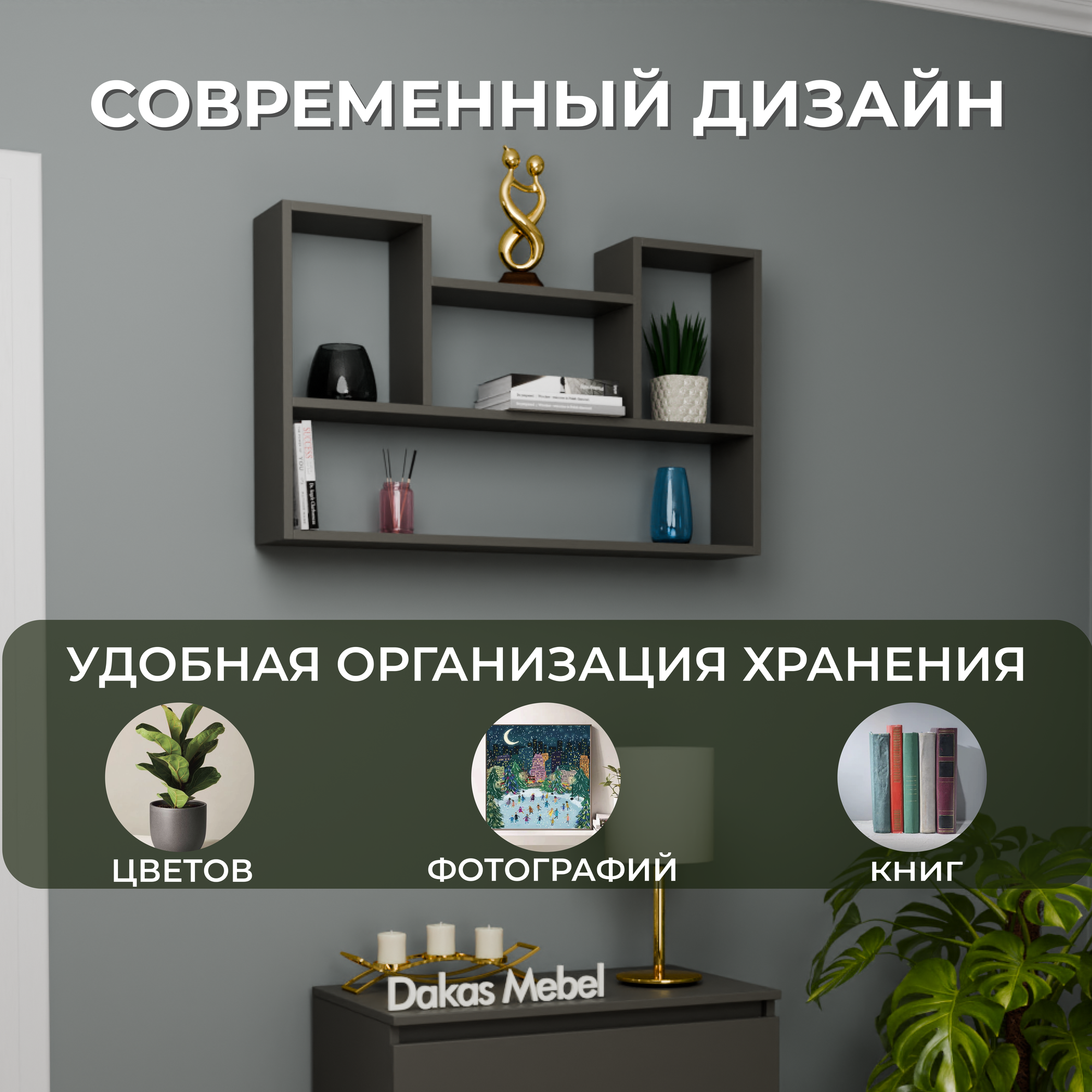 Отзывы на Полка настенная Графит FABIO / полка настенная / книжная / деревянная / для книг, цветов, игрушек 90 х 55 х 16 см