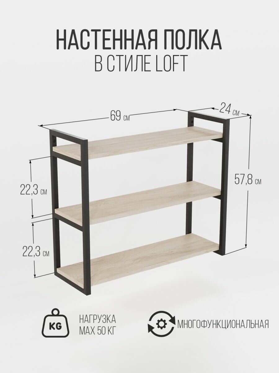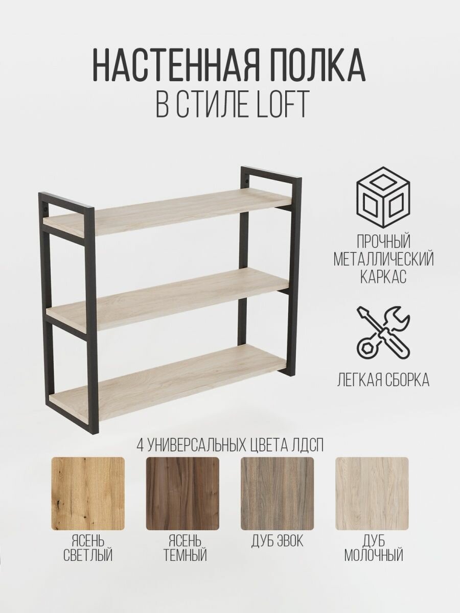 Отзывы на Полка IamLoft для кухни и гостиной, металл и ЛДСП, 3-х ярусная, дуб молочный, нагрузка до 50 килограмм