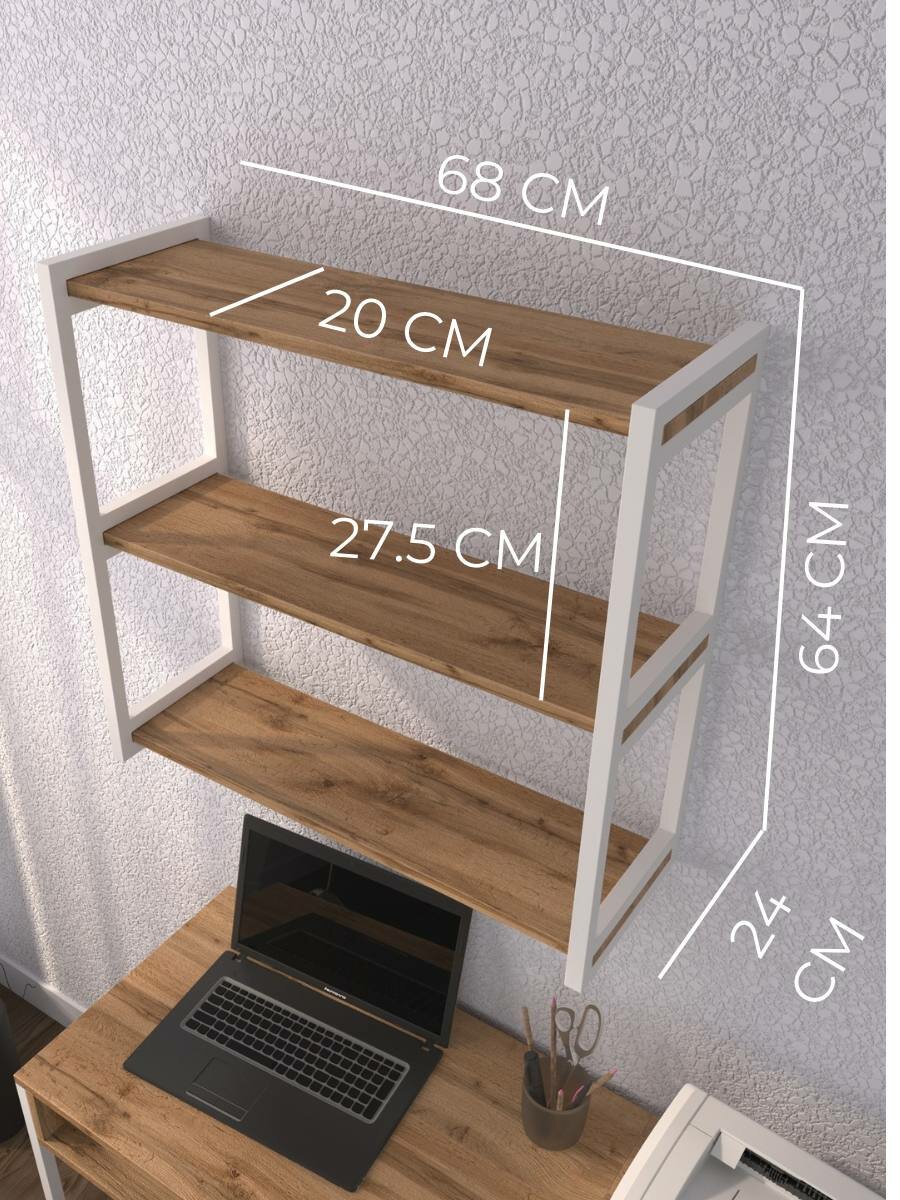 Полка стеллаж настенная лофт деревянная для кухни для книг для ванной белая 7 200 ₽