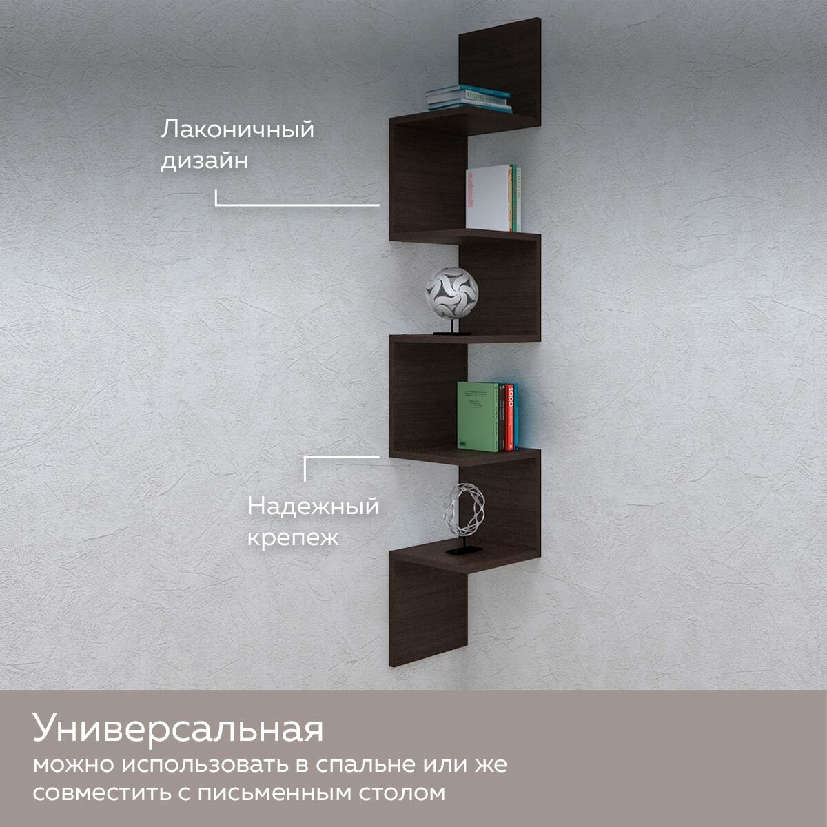 Полка угловая Snitch навесная настенная для вещей, книг, игрушек, для дома и офиса, декор, лдсп, Венге информация:
