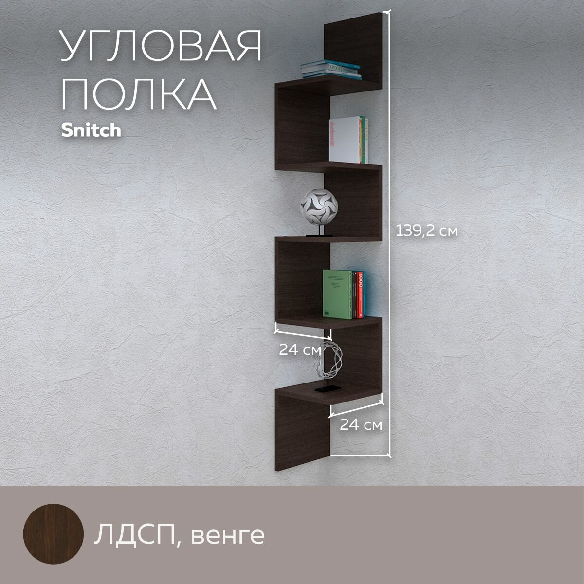 Отзывы на Полка угловая Snitch навесная настенная для вещей, книг, игрушек, для дома и офиса, декор, лдсп, Венге