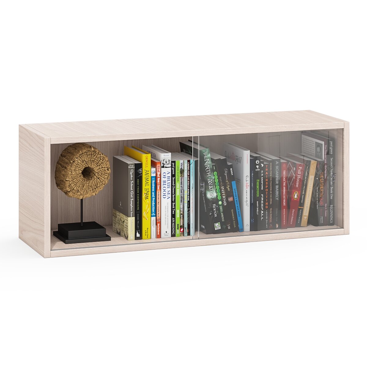 Отзывы на Полка книжная со стеклом Мебельный Двор С-МД-КН01 цвет ясень шимо светлый, 83х25х30 см