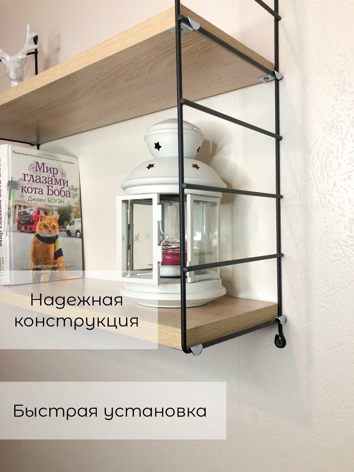 Полка настенная навесная Грация, Скандинавский стиль, металл+ЛДСП 16мм 1 950 ₽