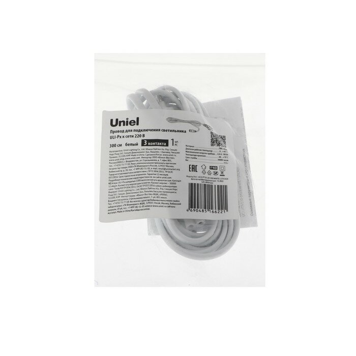 Провод для подключения светильника ULI-P* к сети 220В Uniel, 300 см, 3 контакта, белый информация: