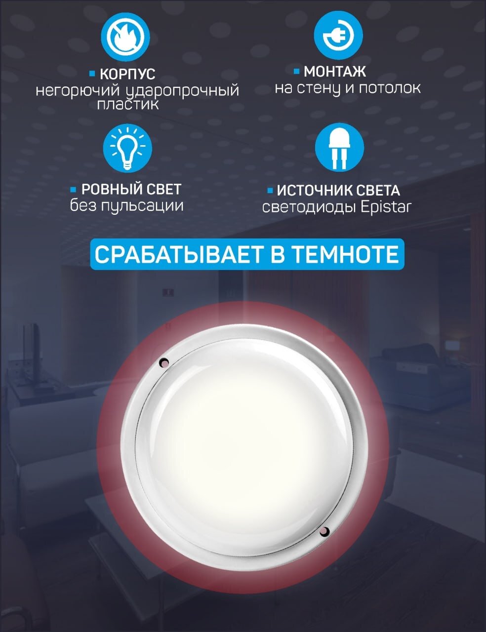 Светильник светодиодный герметичный IP 65 RBL-S 10w(с датчиком освещенности и акустическим)