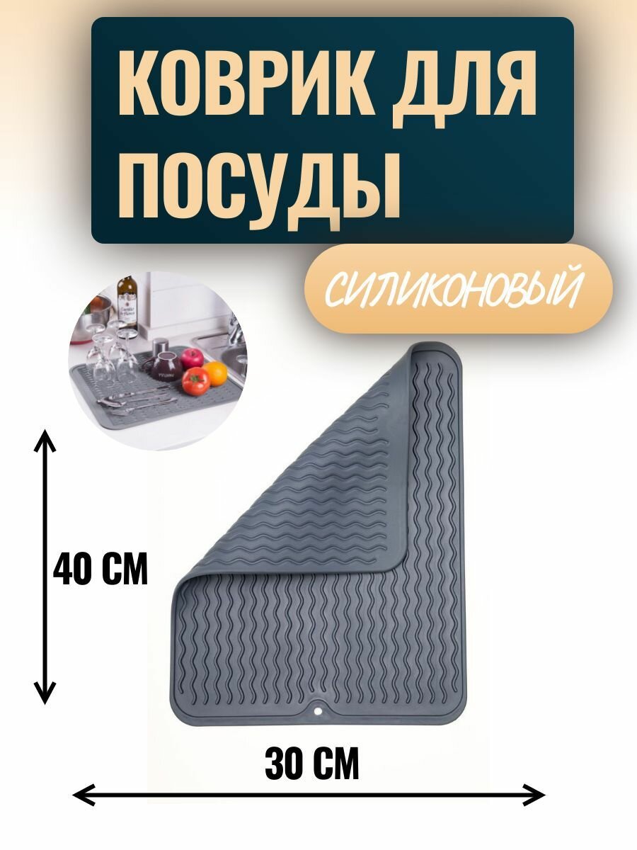 10 цен на Коврик для сушки посуды / Сушилка для посуды / силиконовый коврик/ Темно серый