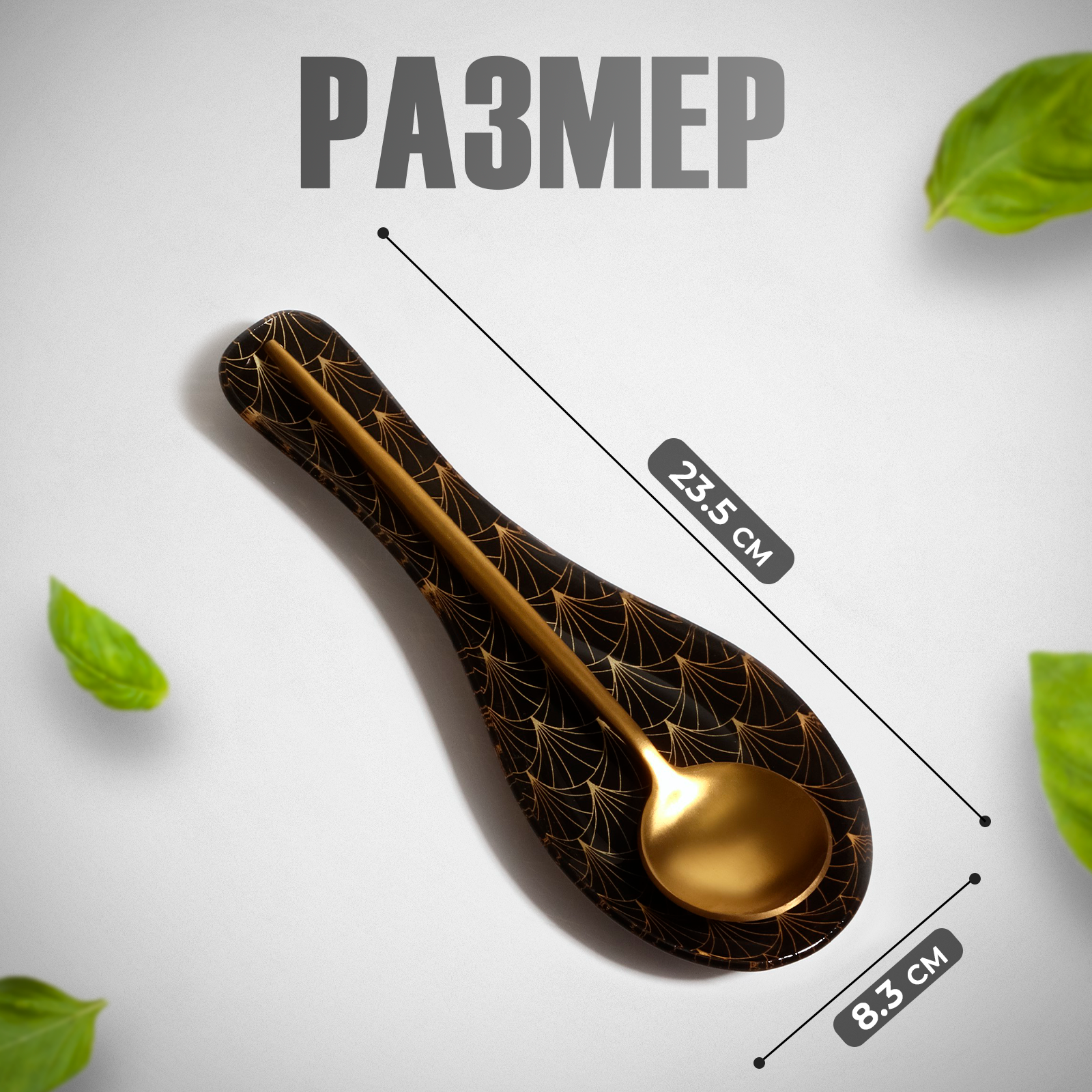 Подставка стеклянная под ложку Доляна «Золотое перо», 23,5×8,3 см, цвет чёрный информация: