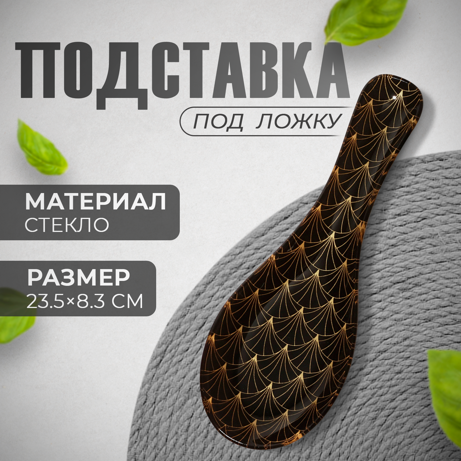 10 цен на Подставка стеклянная под ложку Доляна «Золотое перо», 23,5×8,3 см, цвет чёрный