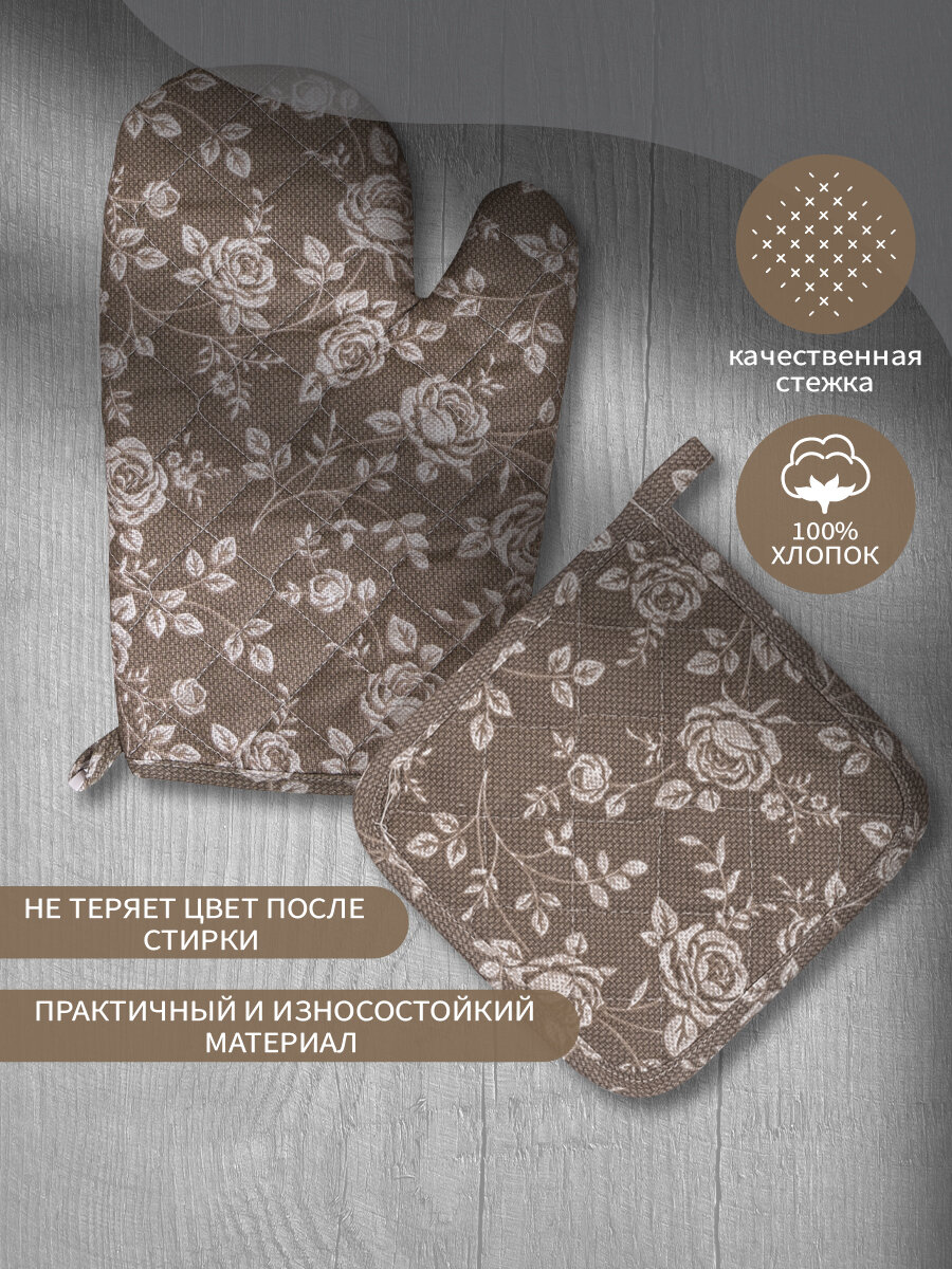 Набор кухонный Василиса рукавица + прихватка, Рогожка, хлопок 100%, Кафе 356 ₽