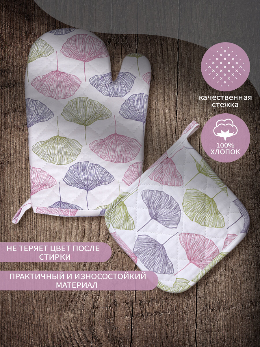 10 цен на Набор кухонный (рукавица + прихватка) из рогожки, Цветение