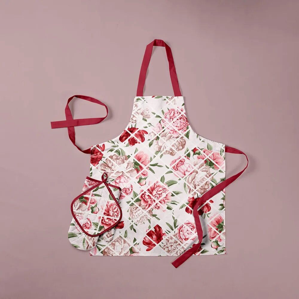 Подарочный набор прихватки для кухни (прихватка 18х18, прихватка-рукавица,18х28, фартук 60х70) "Mia Cara" рис 30200-1 Душистый пион 461 ₽