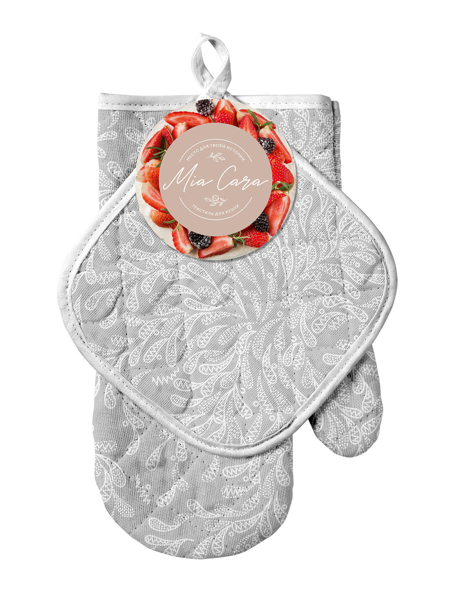 Кухонный набор (прихватка 18х25+рукавица 18х33) "Mia Cara" Vanilla (лицевая часть - 100% полиэстер, задняя часть 80% полиэстер, 20 % хлопок)
