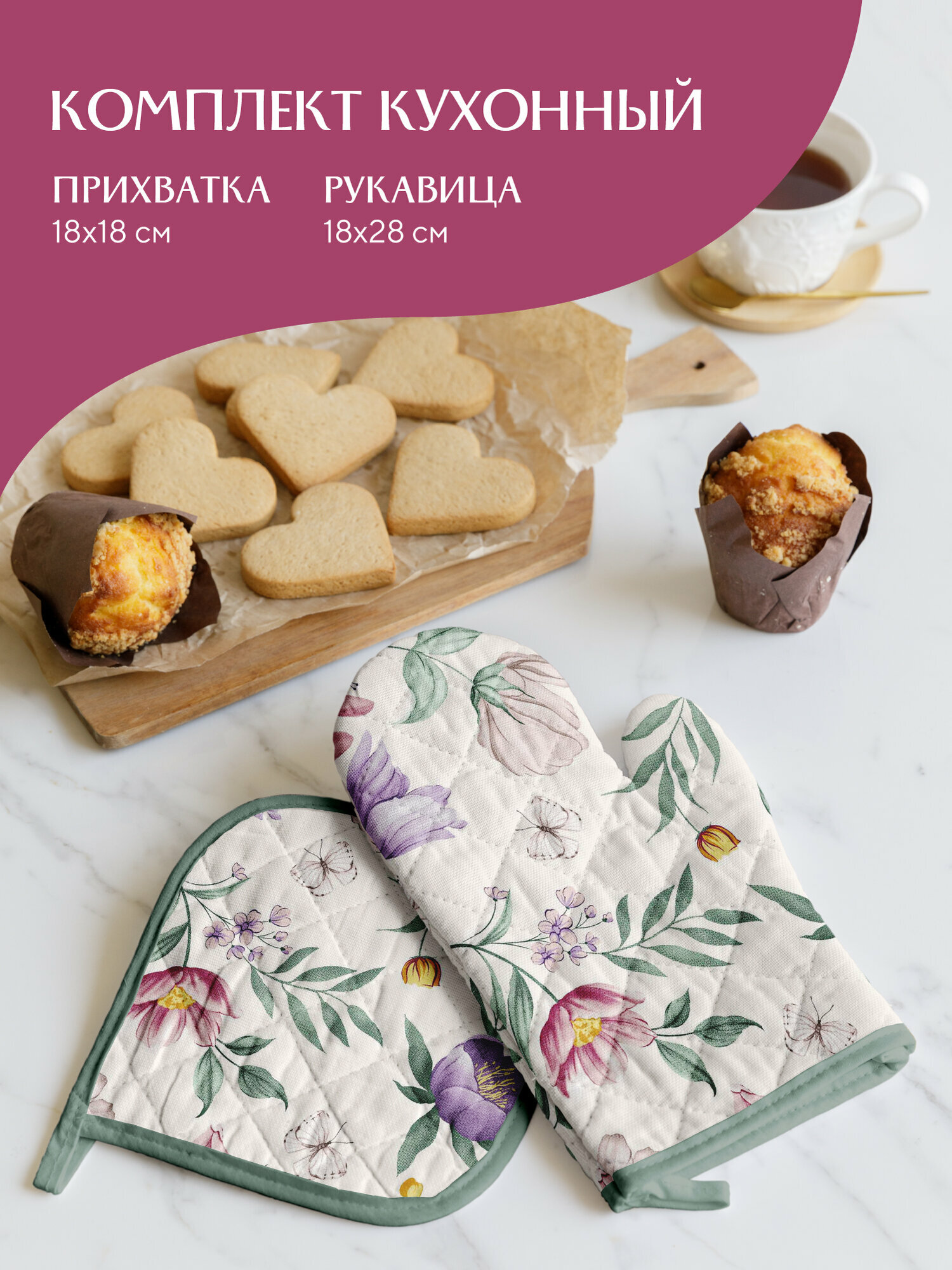Подарочный набор прихватки для кухни (прихватка 18х18, прихватка-рукавица 18х28) "Mia Cara" рис 14057-1 Душистый пион 327 ₽