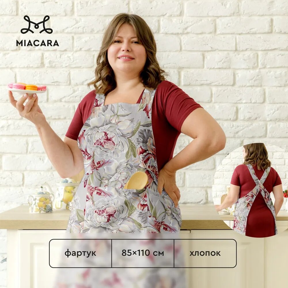 Фартук с карманом рогожка 85х110 "Mia Cara" рис 30200-1 Душистый пион информация: