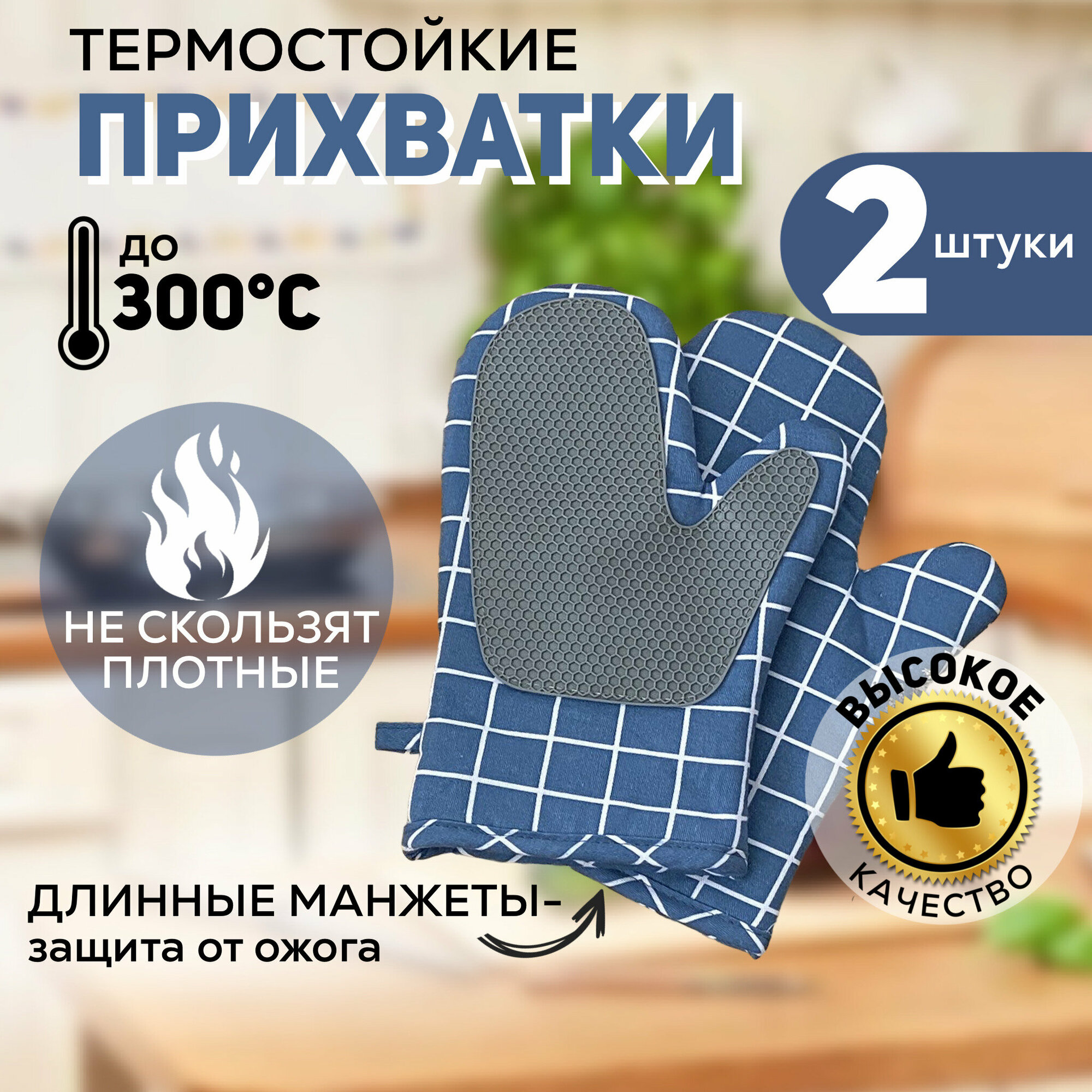 Рукавицы для кухни / Прихватки кухонные / Варежки для кухни / Термостойкие / Синие / 2 шт информация:
