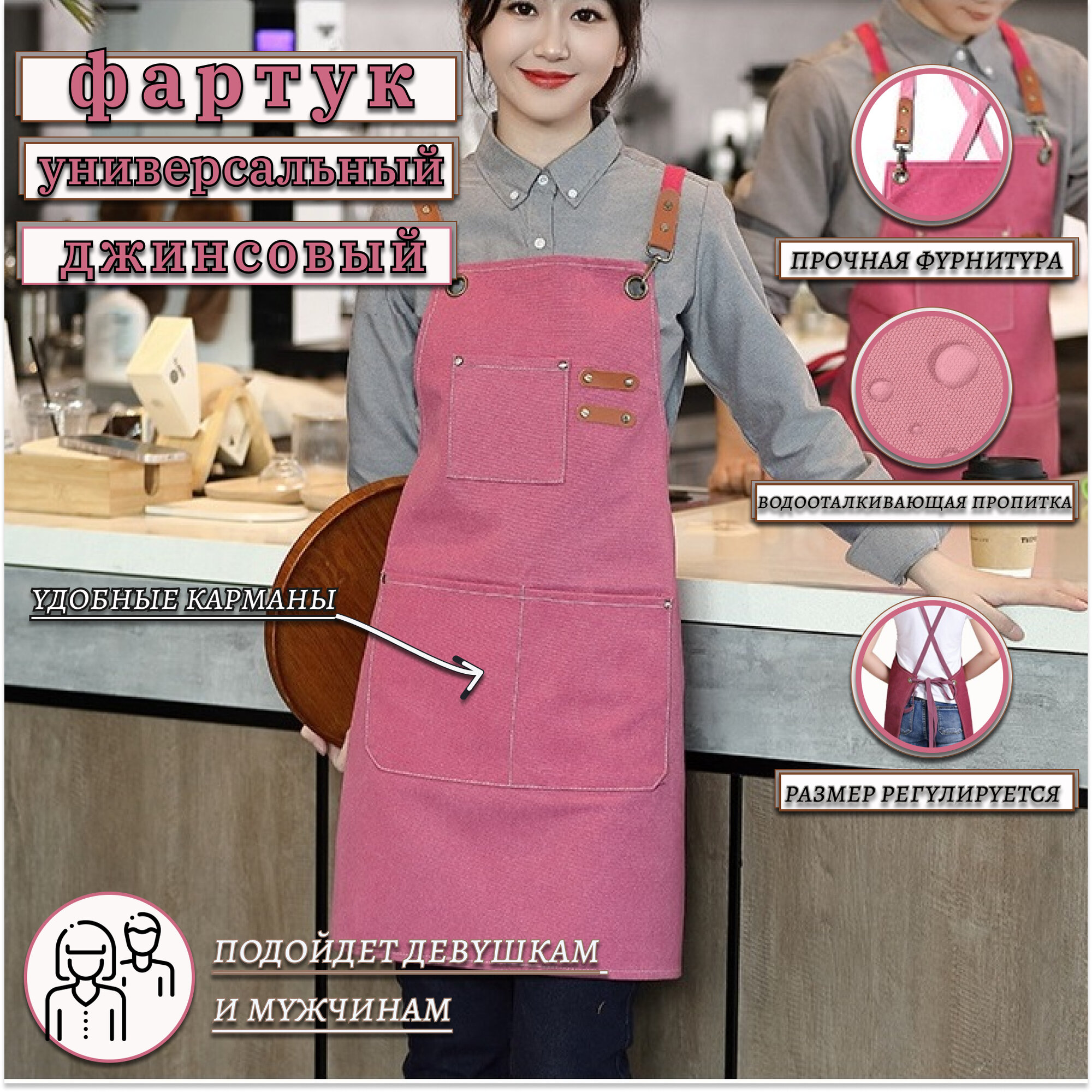 Отзывы на Фартук универсальный плотный для официанта, бармена, бариста, парикмахера, продавца, повара, кондитера, флориста, кухонный, рабочий. Цвет насыщенный розовый