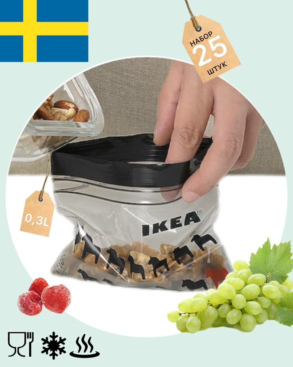 Отзывы на Зип пакеты пищевые для продуктов и заморозки икеа Истад IKEA Istad с замком zip lock, 25 штук, 0,3 л
