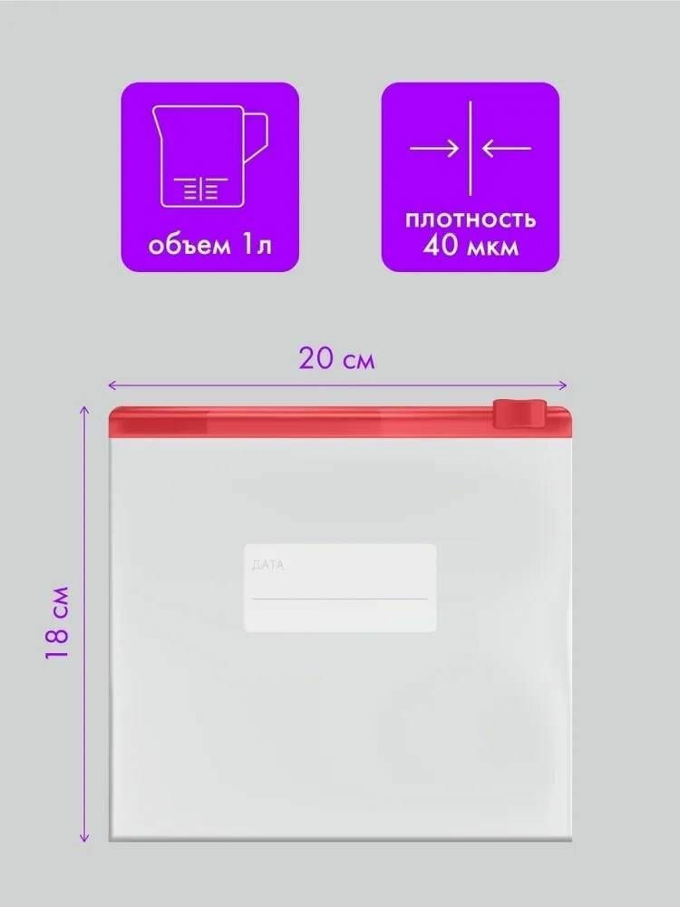 Пакеты для заморозки и хранения продуктов с замком слайдер, 18*20 см информация: