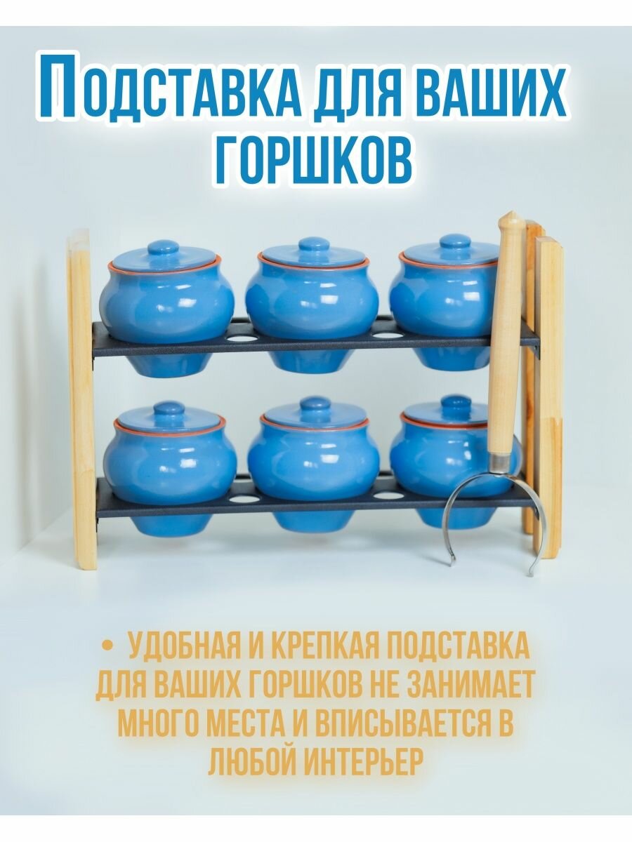 Горшочки для запекания 6 шт с подставкой и ухватом 0,4 л информация: