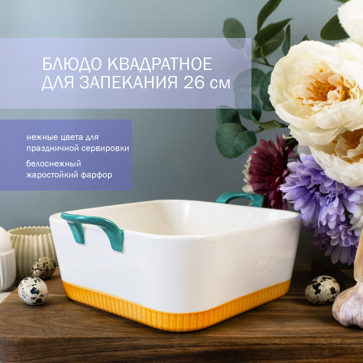 Блюдо для запекания квадратное фарфоровое Pastel Country 26 см, подарочная упаковка информация:
