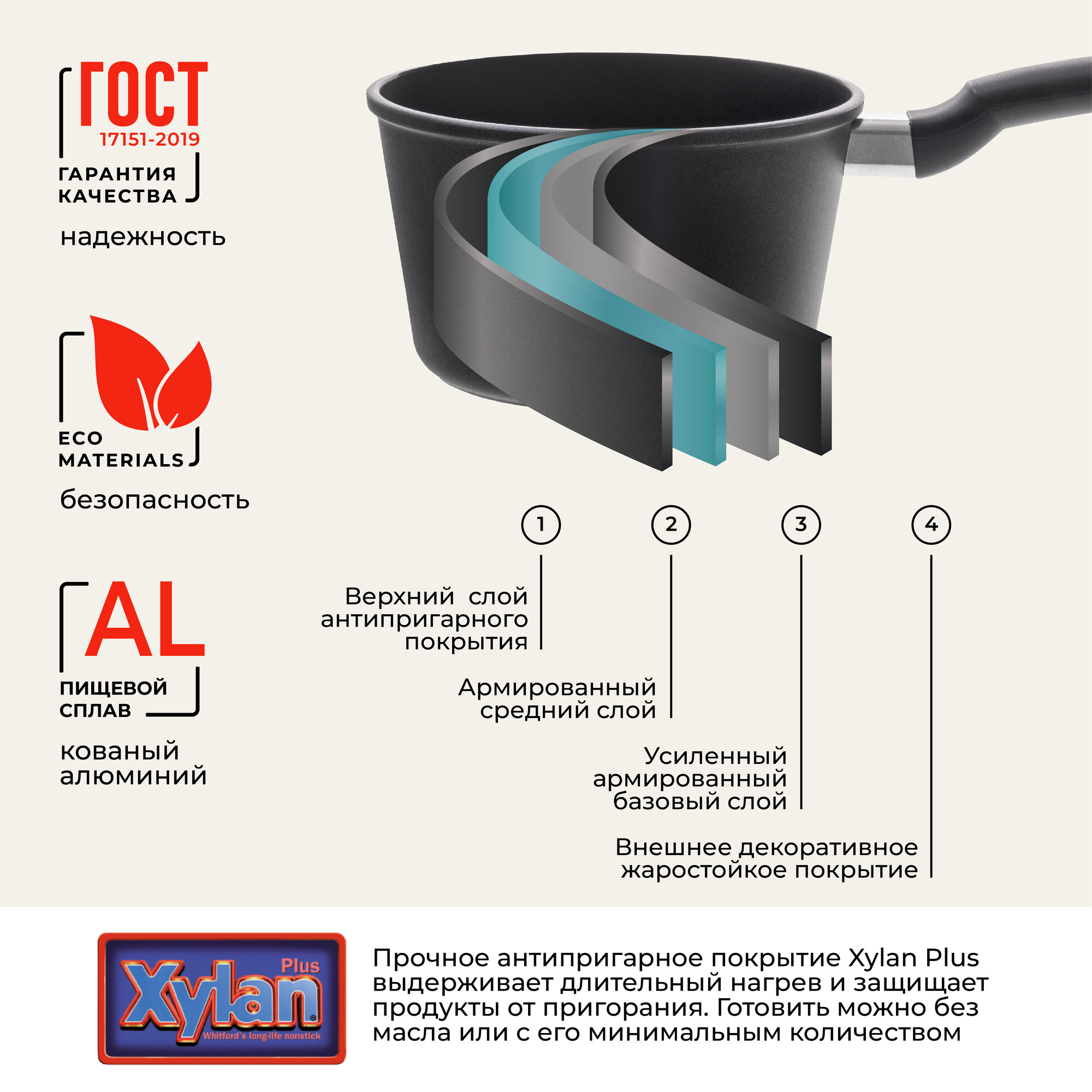Ковш кухонный для индукции Unifico Ispirato quarzo с крышкой 1,8 л. 1 959 ₽