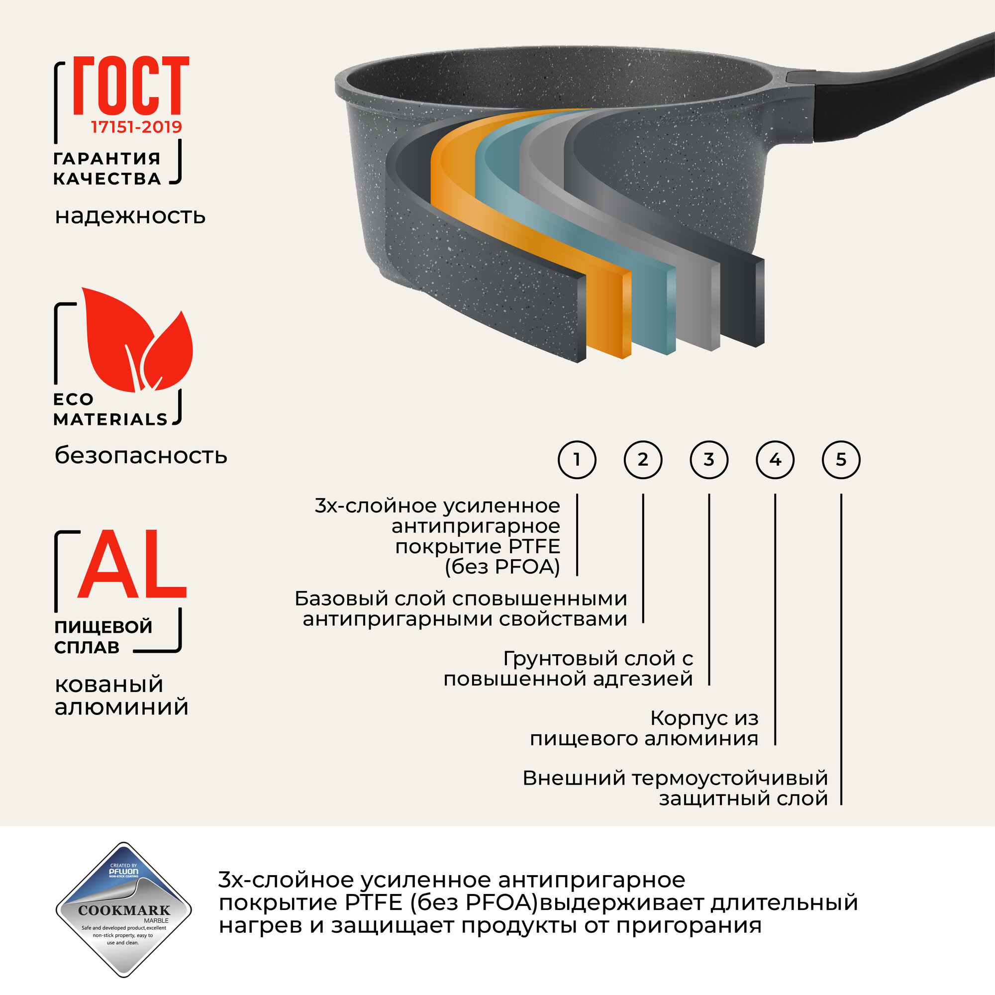 Ковш кухонный для индукции Unifico Ispirato quarzo с крышкой 1,8 л. информация: