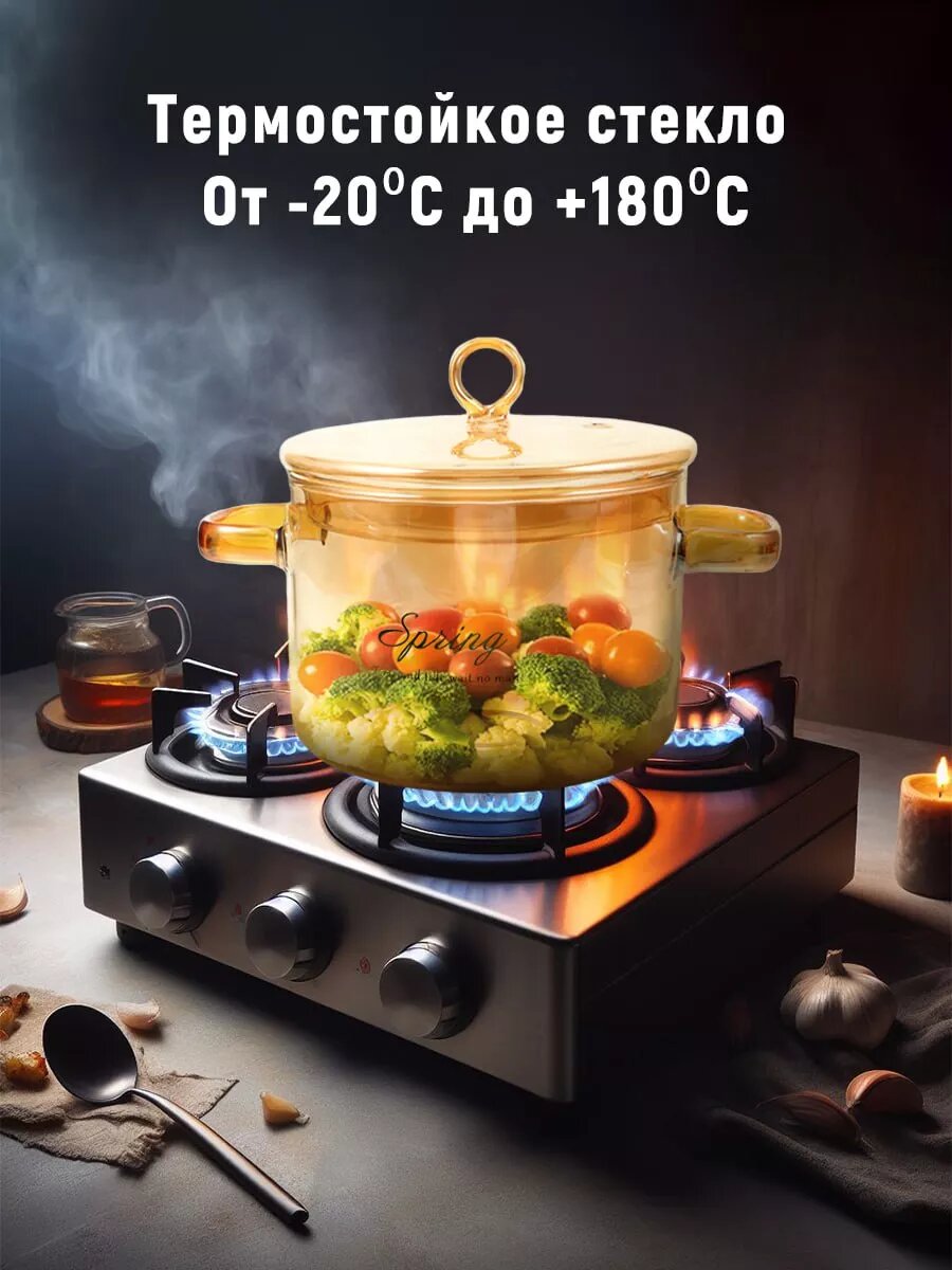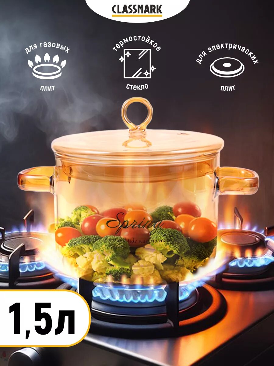 Стеклянная кастрюля с крышкой для плиты жаропрочная 1,5 л информация: